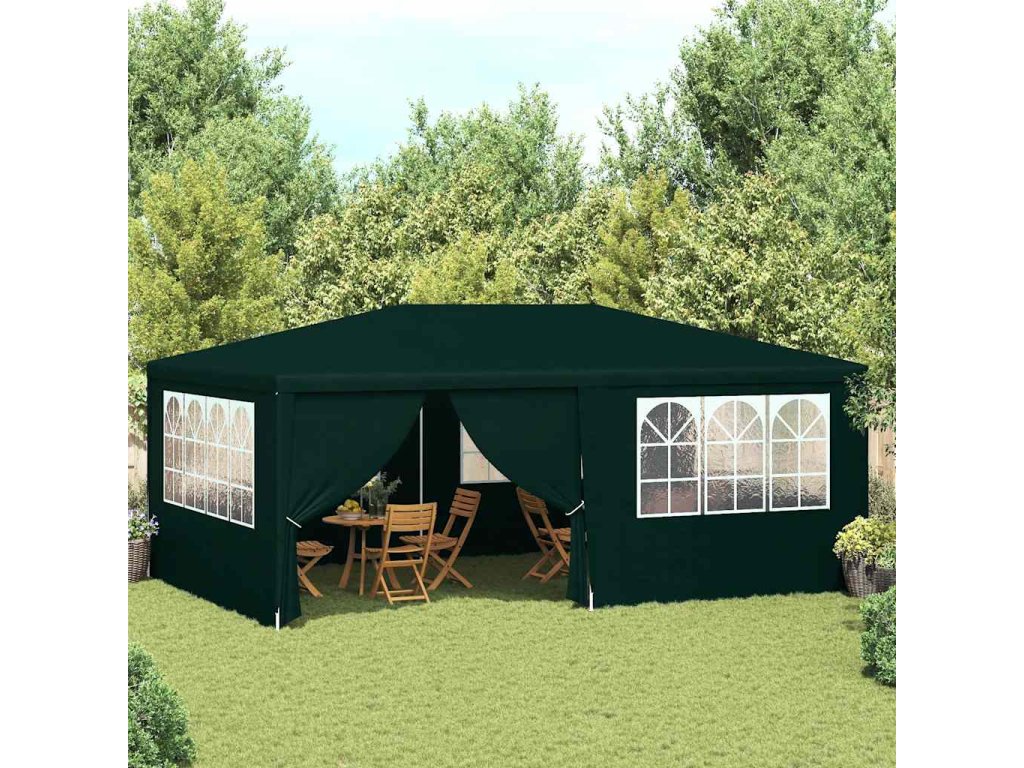 Záhradný stan je vyrobený z polyetylénového materiálu, ktorý je vodovzdorný a odolný voči UV žiareniu, a preto je naozaj vhodný do exteriéru. Rám je vyhotovený z ocele odolnej voči hrdzi, vďaka čomu je vonkajší prístrešok veľmi stabilný a trvácny. Párty stan má bočné panely, pričom na každom z nich sa nachádzajú dekoratívne okienka, a 1 panel s dvierkami na zips, ktorý umožňuje jednoduchý prístup dovnútra. Záhradný altánok sa jednoducho montuje.