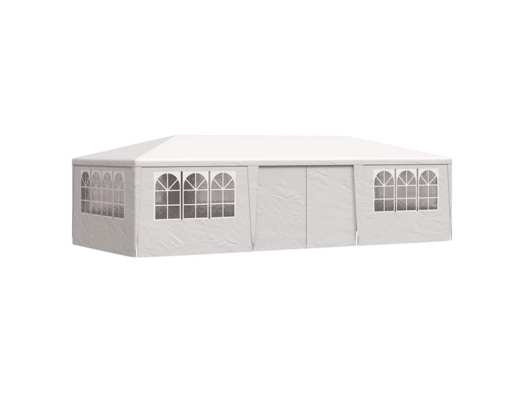 Záhradný stan je vyrobený z polyetylénového materiálu, ktorý je vodovzdorný a odolný voči UV žiareniu, a preto je naozaj vhodný do exteriéru. Rám je vyhotovený z ocele odolnej voči hrdzi, vďaka čomu je vonkajší prístrešok veľmi stabilný a trvácny. Párty stan má bočné panely, pričom na každom z nich sa nachádzajú dekoratívne okienka, a 1 panel s dvierkami na zips, ktorý umožňuje jednoduchý prístup dovnútra. Záhradný altánok sa jednoducho montuje.