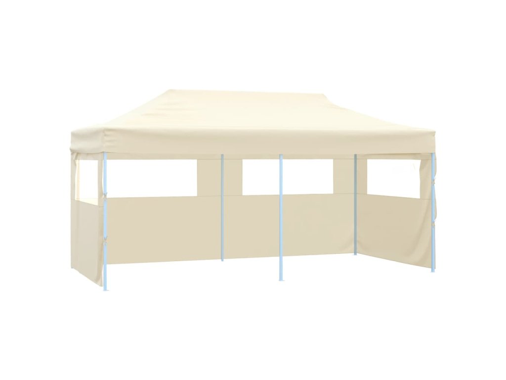 Strecha tohto vonkajšieho prístrešku je vyrobená z oxfordskej látky 600D s vrstvou PVC, vďaka čomu je odolná voči vode a UV žiareniu a mimoriadne vhodná do exteriéru. Párty stan má 4 bočné steny s priehľadnými okienkami, a tak poskytuje dokonalú ochranu. Rám je vyhotovený z ocele s práškovou povrchovou úpravou, ktorá je odolná voči hrdzi a prináša potrebnú stabilitu a trvácnosť. Stan sa dá poskladať, aby ste ho mohli bez problémov uskladniť alebo prepraviť. Jednoducho sa montuje.