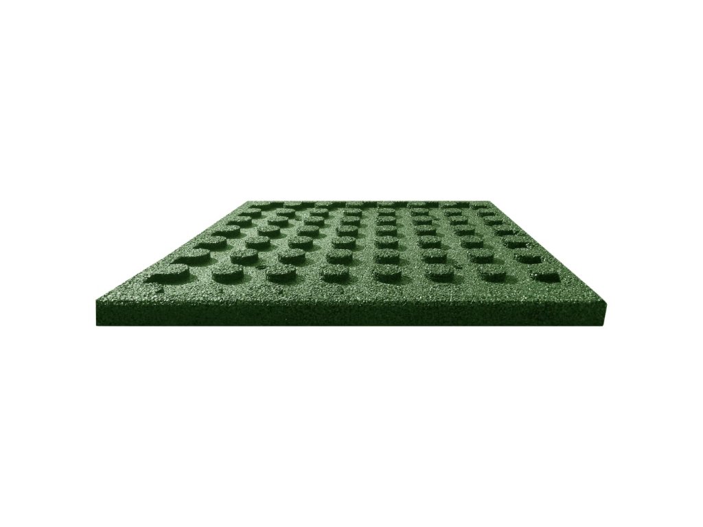 Tieto gumené dlaždice sú vyrobené z odolnej a pružnej gumy, ktorá je pevná a protišmyková. Okrem toho počas používania pevne držia na mieste. 3 cm hrubé gumené dlaždice s vysokou hustotou poskytujú ochranu pred vplyvmi počasia a účinnú absorpciu nárazov, vďaka čomu sú ideálne pre použitie na detských ihriskách (v interiéri aj exteriéri), v záhradách a vonkajších plochách.