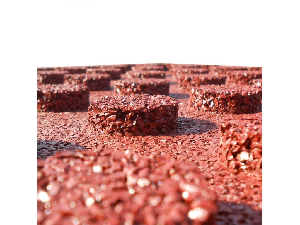 Tieto gumené dlaždice sú vyrobené z odolnej a pružnej gumy, ktorá je pevná a protišmyková. Okrem toho počas používania pevne držia na mieste. 3 cm hrubé gumené dlaždice s vysokou hustotou poskytujú ochranu pred vplyvmi počasia a účinnú absorpciu nárazov, vďaka čomu sú ideálne pre použitie na detských ihriskách (v interiéri aj exteriéri), v záhradách a vonkajších plochách.