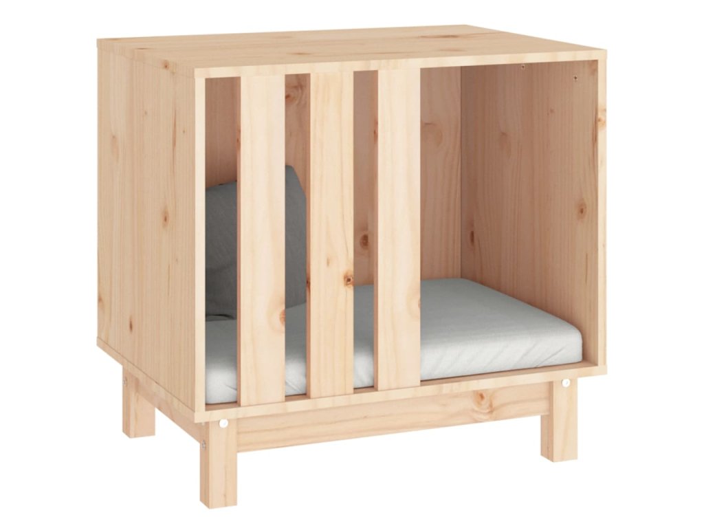 - Jednoduchý dizajn: Drevený pelech pre psa je obdĺžnikový jednoduchý bez ozdôb a je vhodný najmä do minimalistických obytných priestorov.