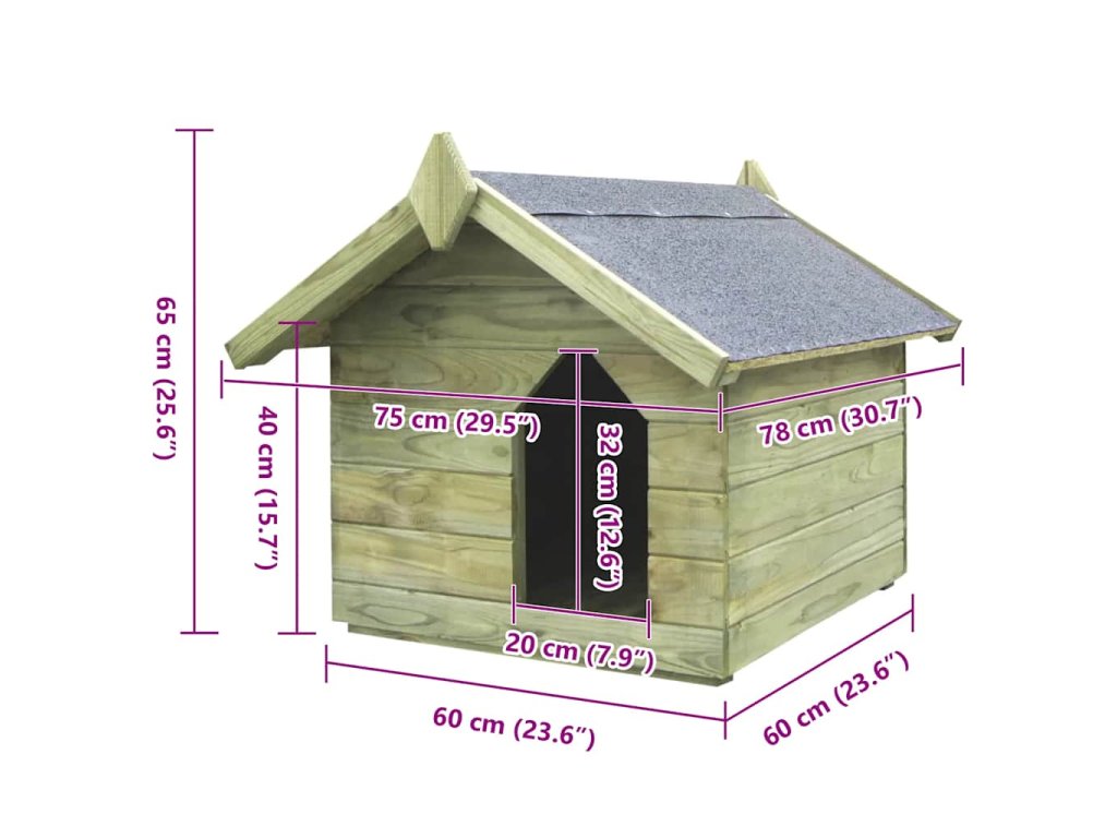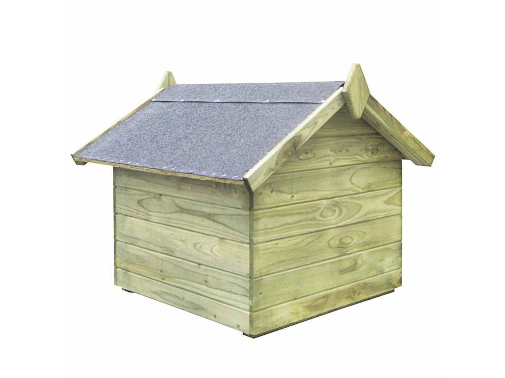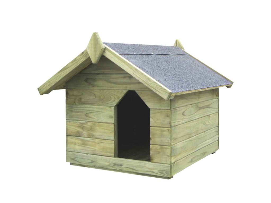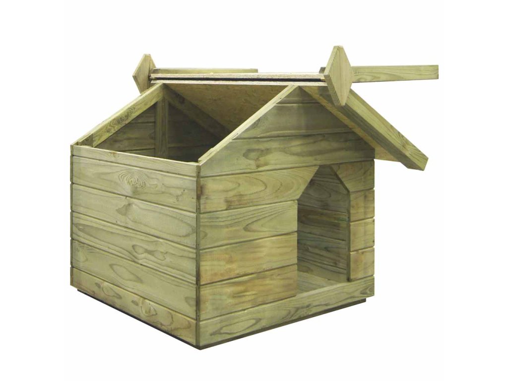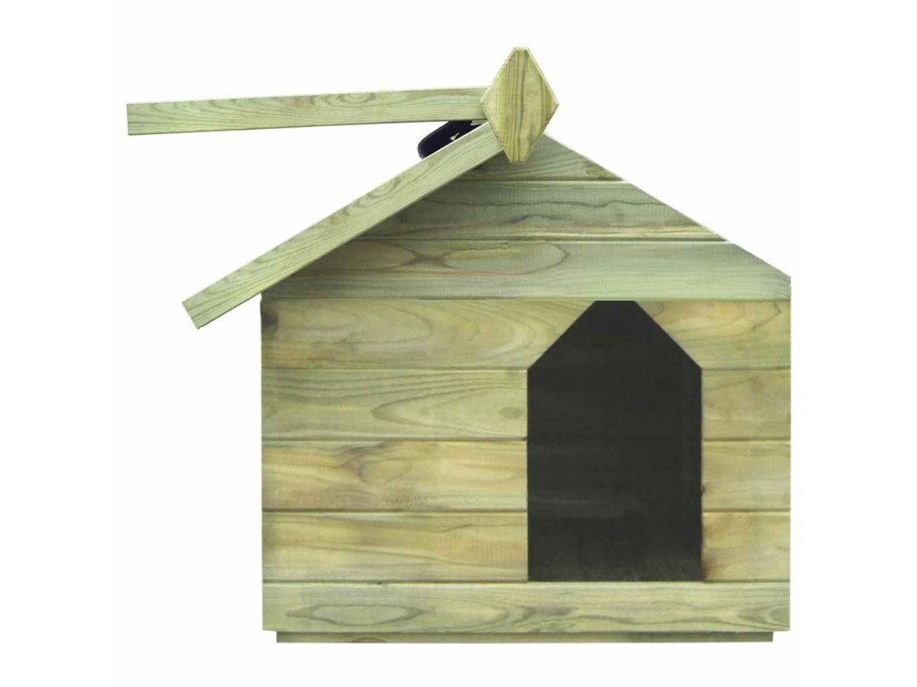 Búda je vyrobená z vysokokvalitného impregnovaného borovicového dreva, vďaka čomu je trvácna a odolná voči poveternostným vplyvom a hnilobe. Strecha s jedinečným dizajnom sa dá otvoriť, a tak umožní jednoduchšie čistenie a dostatočné vetranie, aby sa čo najviac eliminoval zápach. Strecha je navyše pokrytá dechtovou lepenkou, aby bola vodovzdorná. Táto psia búda sa jednoducho montuje.