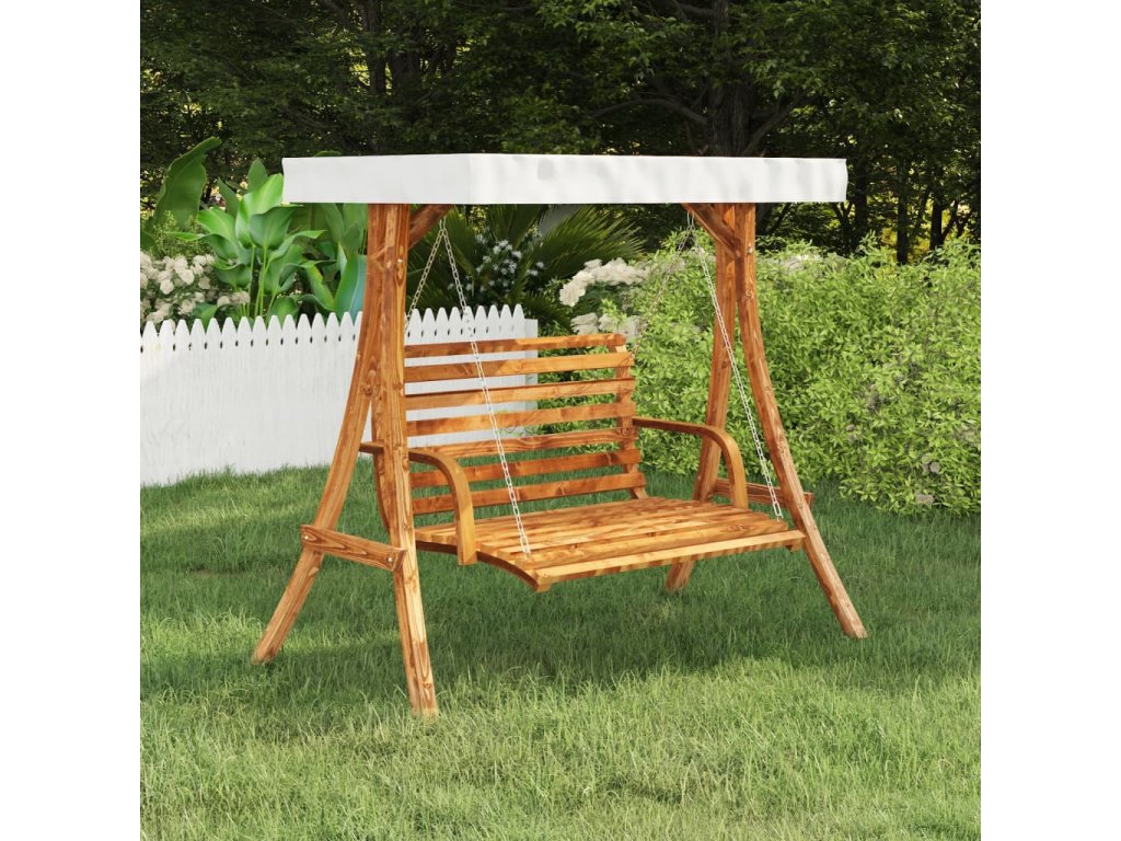 Rám na hojdačku má na rovnej hornej lište plochú striešku s lemom, ktorá vám v letných mesiacoch poskytne ochranu pred škodlivým UV žiarením. Rám je vyrobený z ohýbaného masívu, vďaka čomu je stabilný a robustný a je ako stvorený do exteriéru. Tíková povrchová úprava rámu dodáva jedinečný vzhľad. Zaveste si svoju hojdaciu lavicu na tento stabilný rám a užívajte si pohodové hojdanie v príjemnom tieni.
