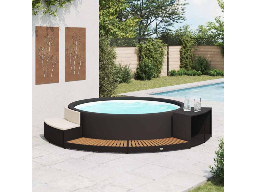 Štýlový polyratanový dekoratívny rám predstavuje všestranný doplnok k vírivke. Dodáva jej elegantný a moderný vzhľad, a zároveň vytvára praktickejšie a pohodlnejšie prostredie v okolí vírívky.