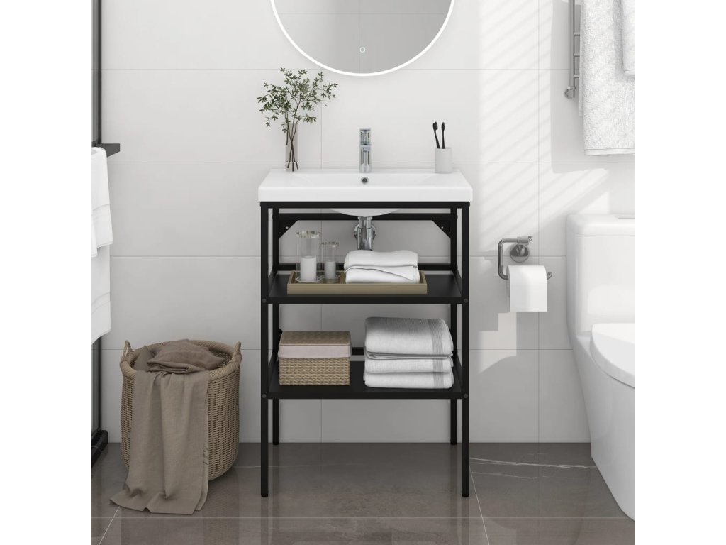Tento rám je vyrobený zo železa s práškovým nástrekom a je odolný voči poveternostným vplyvom a je tiež trvácny. Rám na umývadlo umožňuje ľahký prístup k uterákom a košíkom, a vytvára väčší priestor ako uzavretý úložný priestor. Rám sa ľahko čistí vlhkou handričkou.