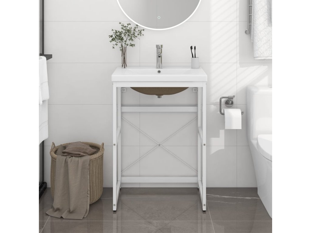 Stojan je vyrobený zo železa s práškovým nástrekom, vďaka čomu je stabilný a odolný. Tento rám umývadla umožňuje ľahký prístup k uterákom a košíkom, a vytvára väčší priestor ako uzavretý úložný priestor. Toto umývadlo z masívneho tíkového dreva je nielen praktický na každodenné použitie, ale slúži aj ako ozdoba vášho obytného priestoru. Vďaka svojmu trendovému a modernému dizajnu sa toto umývadlo určite hodí do každého interiéru. Má aj prepad na odtekanie vody, keď je umývadlo plné. Jeho presklený povrch prináša moderný a zároveň elegantný dizajn. Rám umývadla sa navyše ľahko čistia vlhkou handričkou.