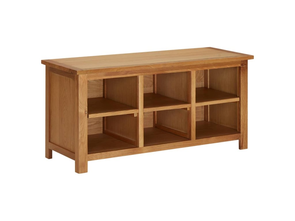 Tento funkčný stojan má jednoduchý dizajn a ľahko sa hodí do vášho existujúceho obytného priestoru. Je vyrobený z masívneho dubového dreva a MDF. Je odolný, stabilný a ľahko sa čistí. Tento drevený organizér topánok má dostatok priestoru vďaka 6 priečinkom a zmestí sa do neho veľa topánok.