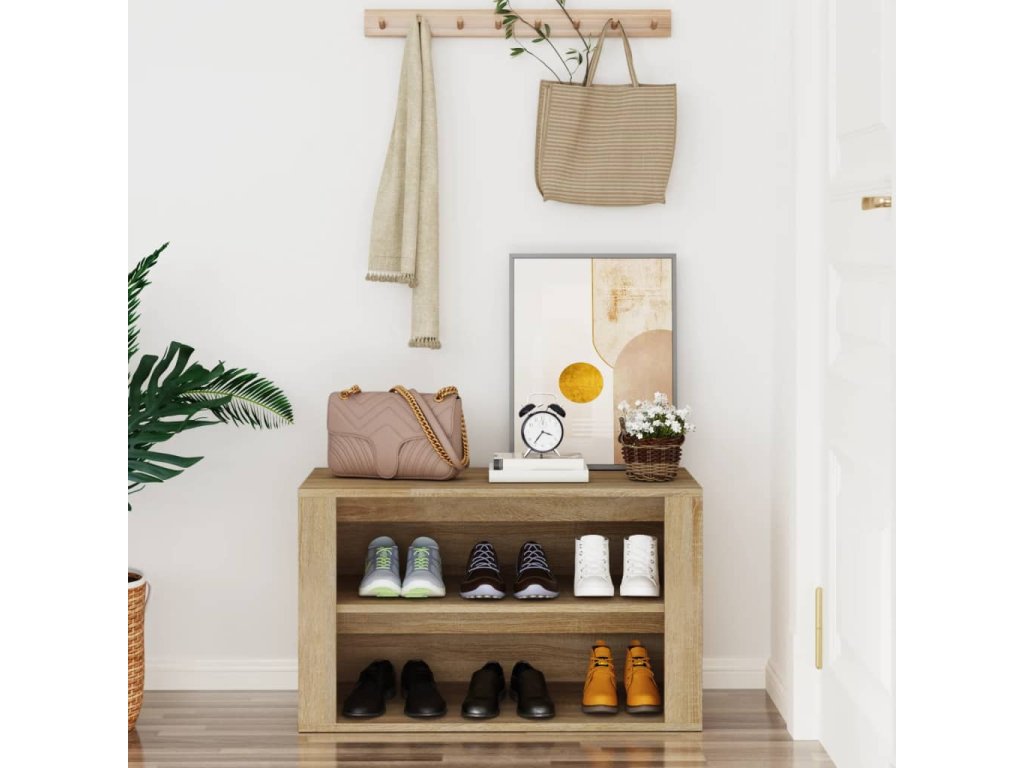 - Pevný materiál: Spracované drevo je mimoriadne kvalitné s hladkým povrchom a vyznačuje sa pevnosťou, stabilitou a odolnosťou proti vlhkosti. Botník je vyrobený zo spracovaného dreva a ľahko sa čistí.