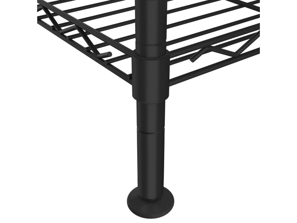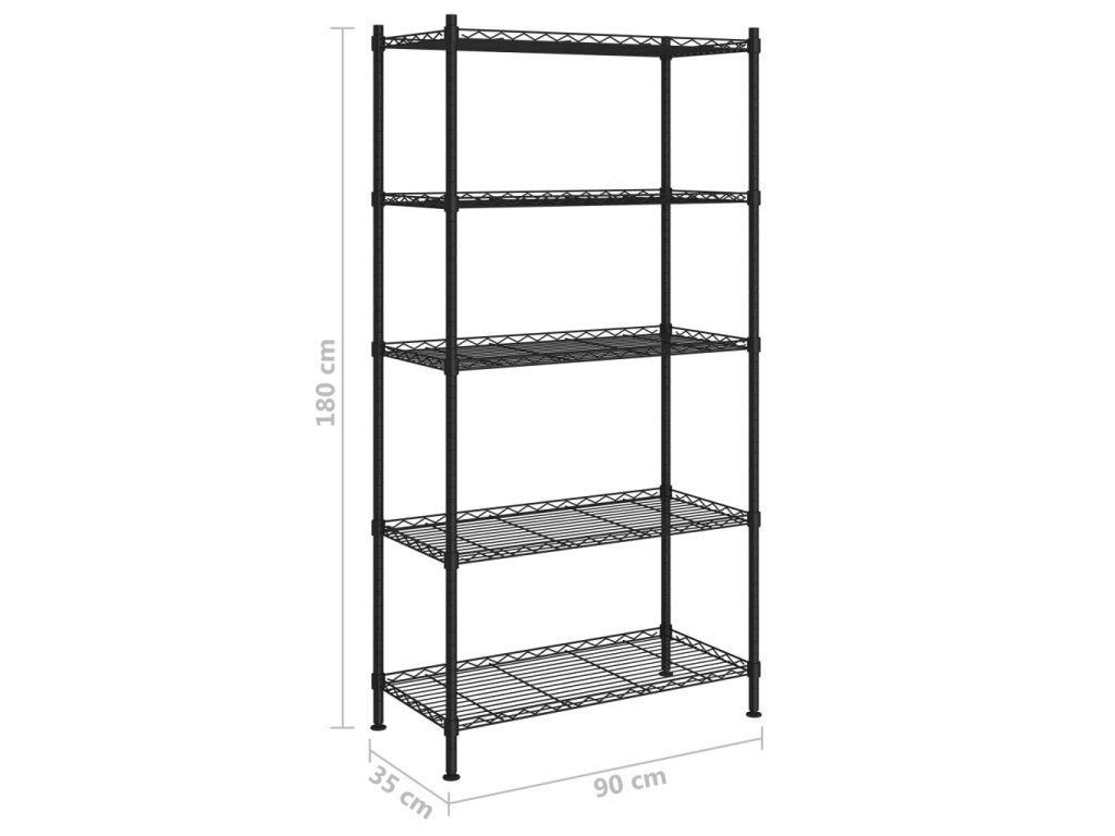 Úložný regál je vyrobený zo železa s čiernou lakovanou povrchovou úpravou a je mimoriadne odolný!