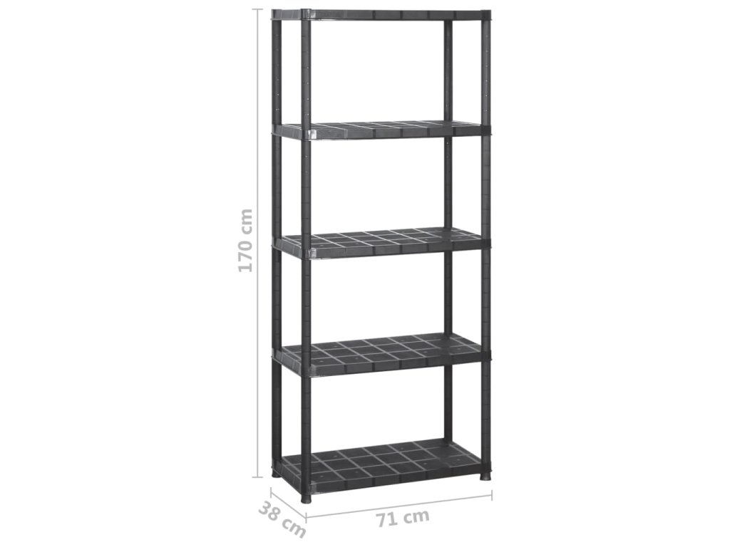 Regál je vyrobený z odolného plastu, vďaka čomu sa ľahko čistí. Skladovací regál má 5 poličiek, vďaka čomu môžete svoje veci udržiavať v perfektnom poriadku. Vyznačuje sa kompaktným dizajnom, a dobre sa využije v obmedzených priestoroch.
