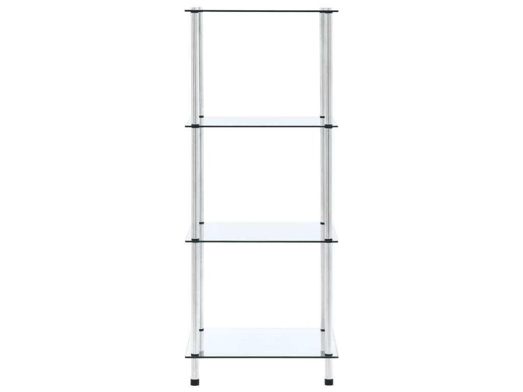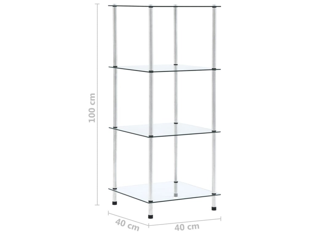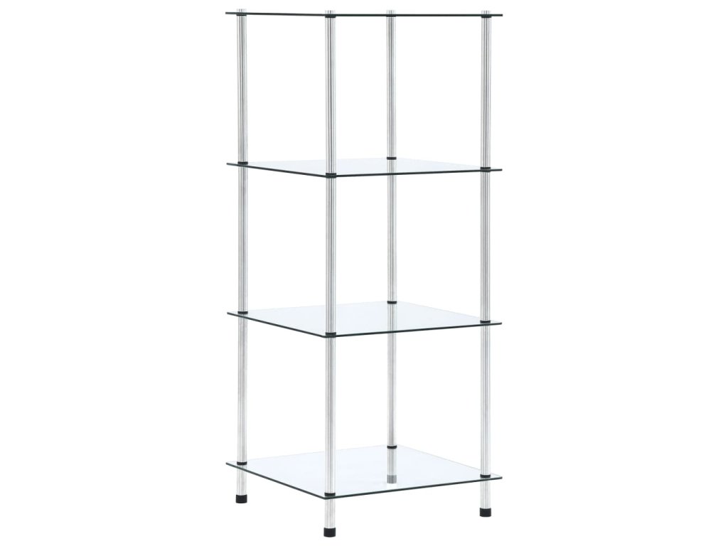 Vitrína má štyri police, ktoré poskytujú množstvo úložného priestoru. Túto multifunkčnú policu môžete umiestniť do obývačky či do kancelárie a vystaviť si na ňu zberateľské predmety, rámiky s fotkami alebo kvety v kvetináči, no môžete ju dať aj do kúpeľne, kde poslúži ako ideálne miesto na odkladanie rôznych toaletných potrieb. Polica je vyrobená z hrubého tvrdeného skla a odolnej a trvácnej nehrdzavejúcej ocele, a preto je mimoriadne pevná a bezpečná. Hladký povrch sa navyše dá ľahko očistiť navlhčenou handričkou. Polica sa jednoducho montuje.