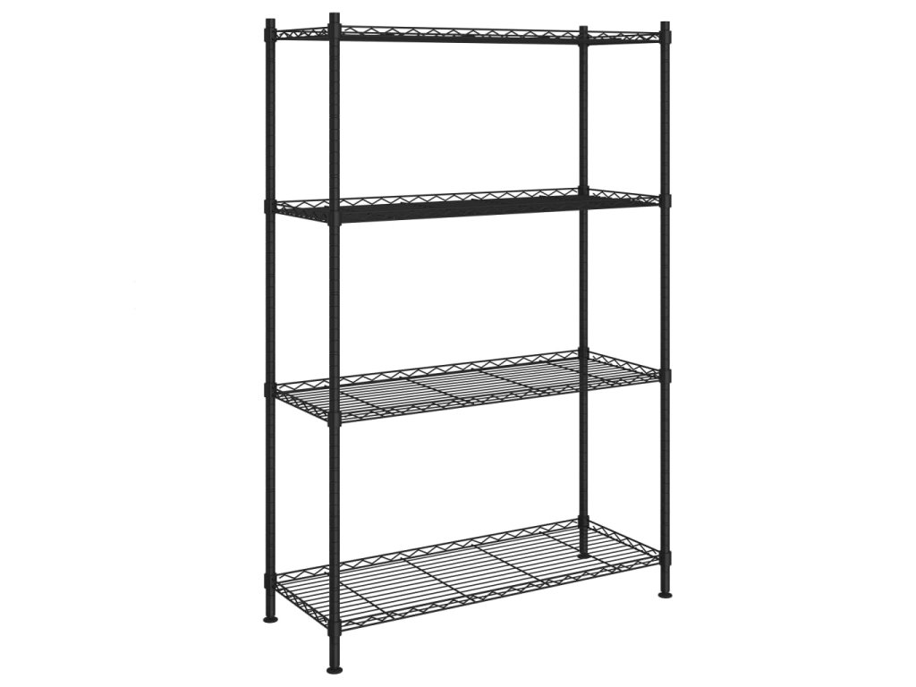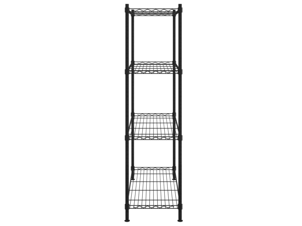 Úložný regál je vyrobený zo železa s čiernou lakovanou povrchovou úpravou a je mimoriadne odolný!