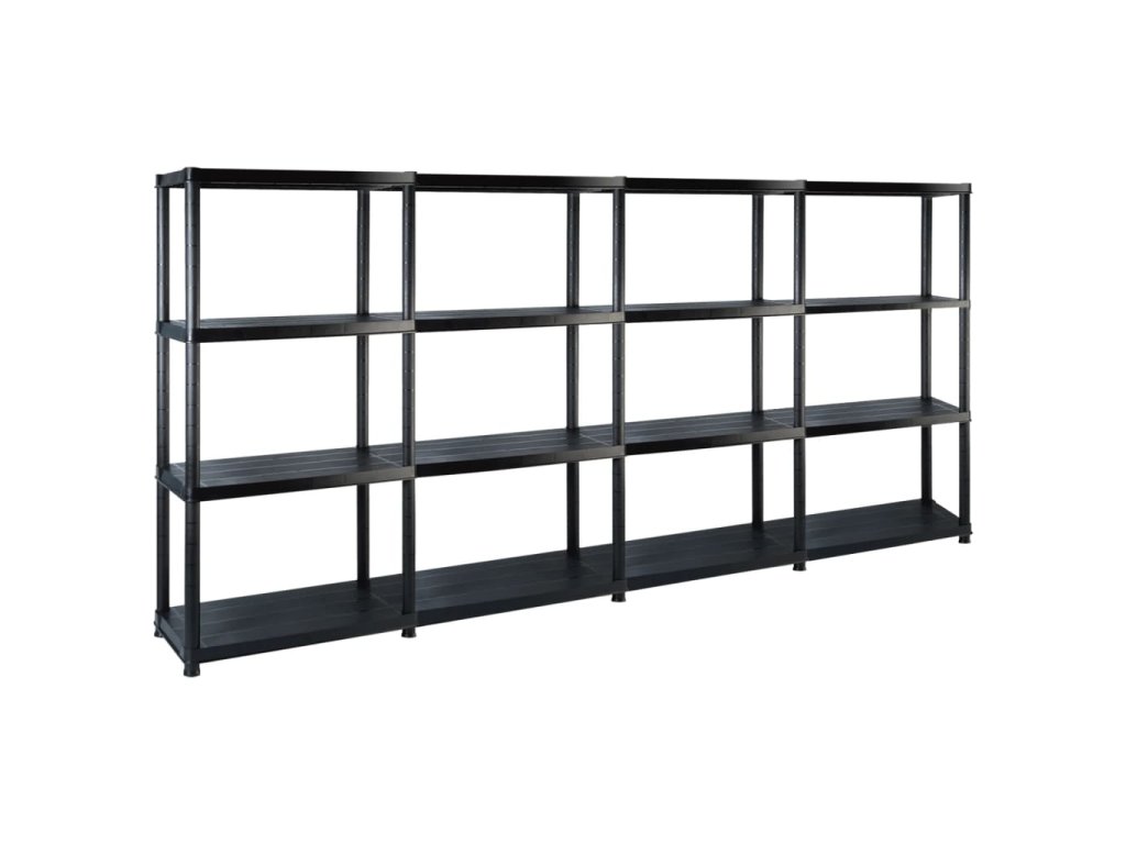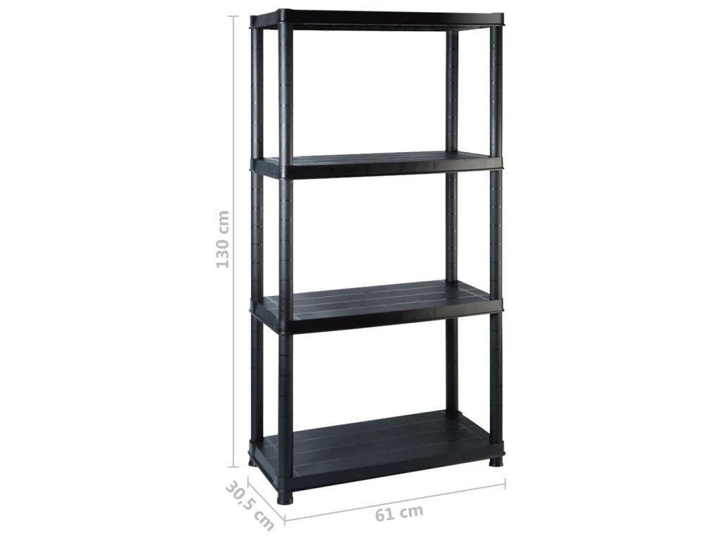 Regál je vyrobený z odolného plastu, vďaka čomu sa ľahko čistí. Skladovací regál má 4 poličky, vďaka čomu môžete svoje veci udržiavať v perfektnom poriadku. Vyznačuje sa kompaktným dizajnom, a dobre sa využije v obmedzených priestoroch.