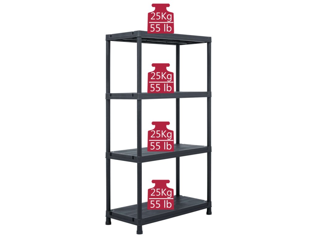 Regál je vyrobený z pevného, odolného plastu, preto sa veľmi ľahko čistí vlhkou handričkou a je vhodný do vlhkého prostredia, ako je kuchyňa, kúpeľňa, sklad a suterén. Vďaka kompaktnej konštrukcii lepšie využijete obmedzený priestor.