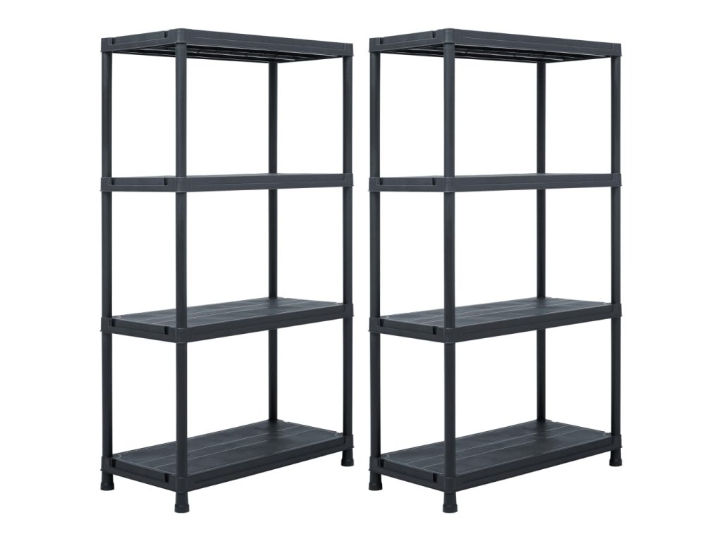S pribaleným montážnym materiálom sa úložný regál jednoducho montuje. Balenie obsahuje 2 regále s poličkami.