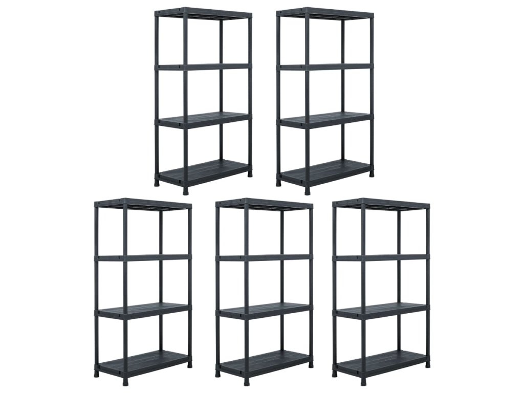 S pribaleným montážnym materiálom sa úložný regál jednoducho montuje. Balenie obsahuje 5 regálov s poličkami.