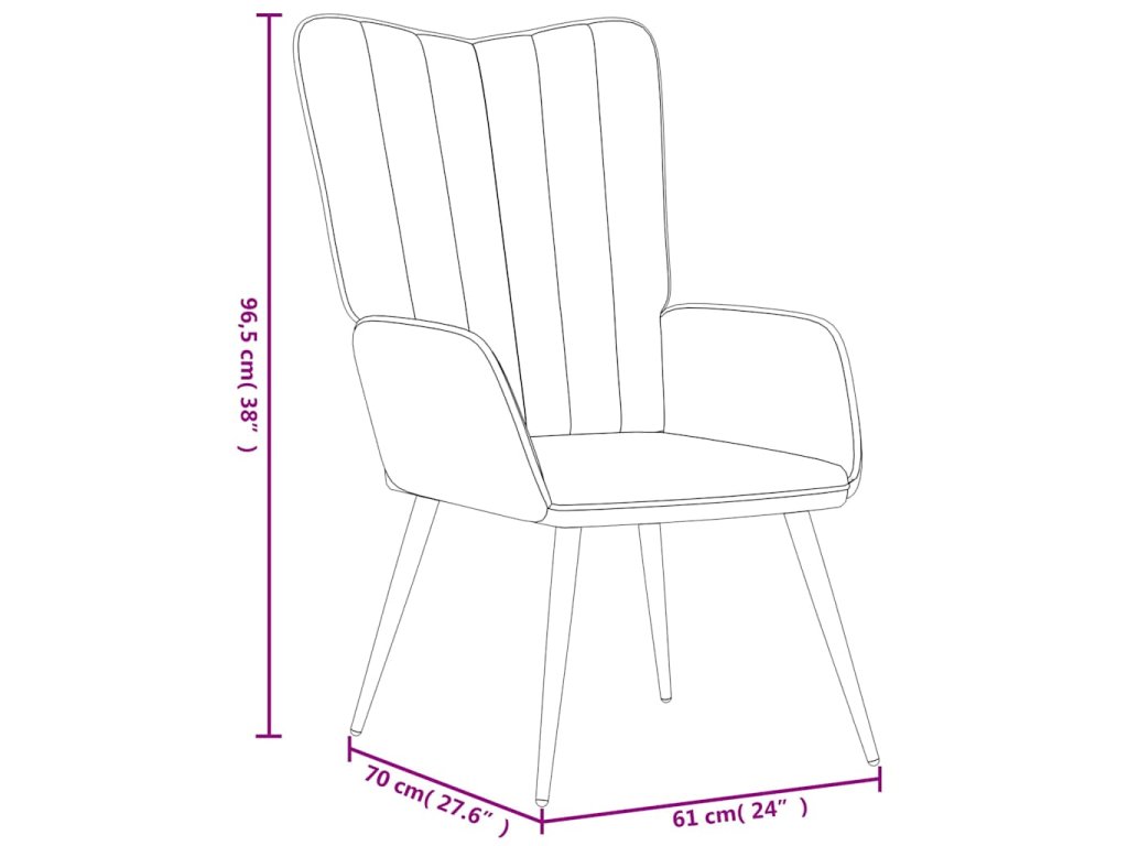 Toto kreslo s ozdobnými líniami na operadle pôsobí veľmi elegantne. Poťah z na dotyk mäkkého zamatu s molitanovým polstrovaním vám poskytne optimálne pohodlie pri sedení. Relaxačné kreslo je navyše podopreté oceľovým rámom, ktorý mu dodáva potrebnú stabilitu a trvácnosť.