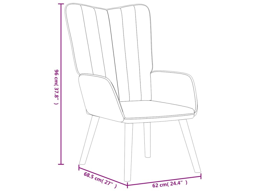 Toto kreslo s ozdobnými líniami na operadle pôsobí veľmi elegantne. Poťah z na dotyk mäkkého zamatu s molitanovým polstrovaním vám poskytne optimálne pohodlie pri sedení. Relaxačné kreslo je navyše podopreté oceľovým rámom s drevenými nohami, ktoré mu dodávajú potrebnú stabilitu a trvácnosť.