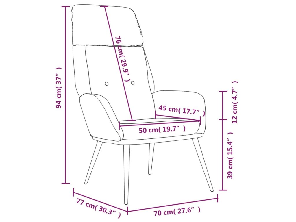 Toto relaxačné kreslo s hustou výplňou je čalúnené umelou semišovou kožou. Poskytne maximálne pohodlie pri sedení. Kreslo do obývačky má kovový rám, vďaka čomu je pevné a stabilné. Opierky rúk navyše umožnia pohodlný odpočinok pre vaše ruky.