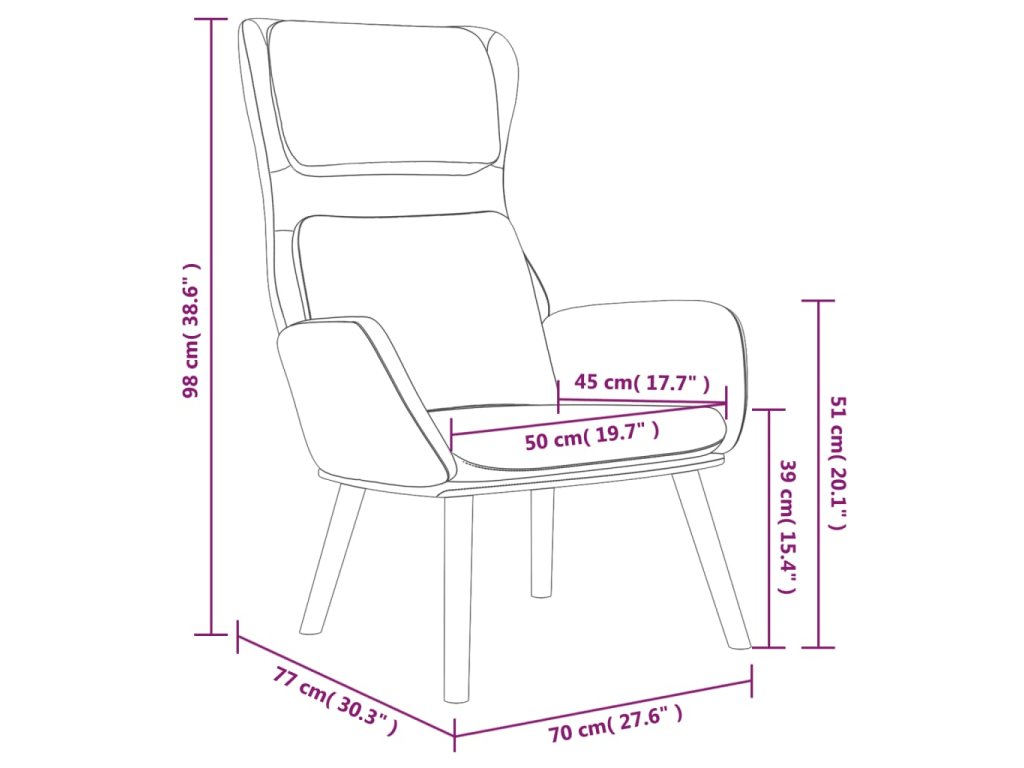 Toto relaxačné kreslo s hustou výplňou je čalúnené jemným zamatom. Poskytne maximálne pohodlie pri sedení. Toto kreslo do obývačky s kovovým rámom a nohami z masívneho kaučukového dreva je pevné a stabilné. Opierky rúk navyše umožnia pohodlný odpočinok pre vaše ruky.
