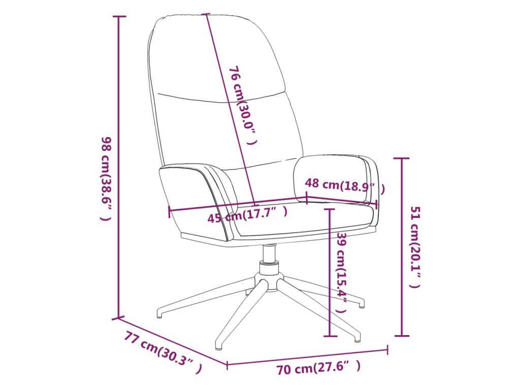 Toto relaxačné kreslo s hustou výplňou je čalúnené umelou semišovou kožou. Poskytne maximálne pohodlie pri sedení. Otočná stolička má kovový rám, vďaka čomu je pevná a stabilná. Opierky rúk navyše umožnia pohodlný odpočinok pre vaše ruky. Môže sa tiež otáčať o 360 stupňov.