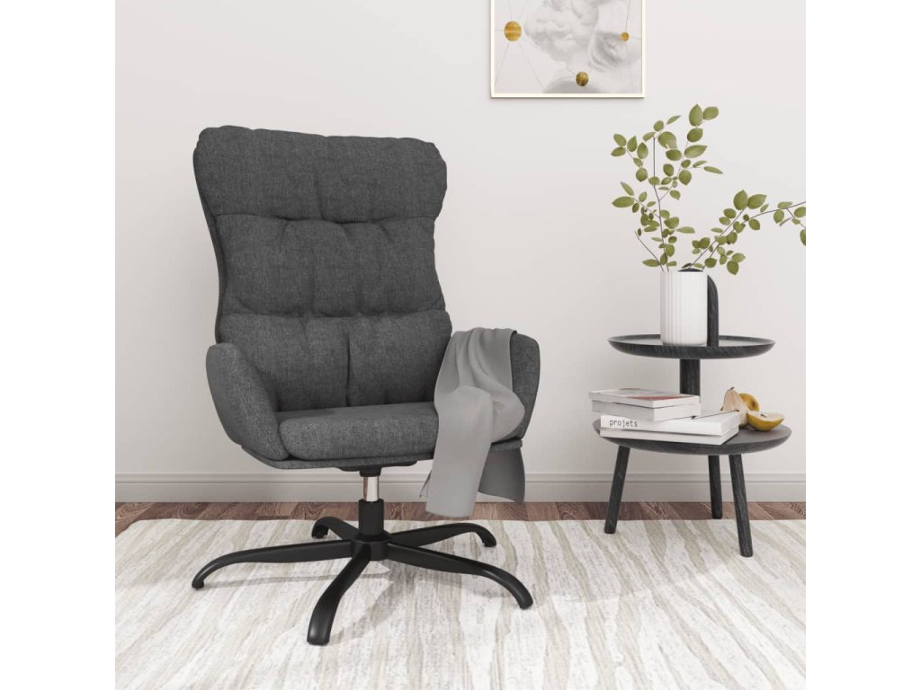 Toto relaxačné kreslo s hustou výplňou je čalúnené látkou. Poskytne maximálne pohodlie počas sedenia. Otočná stolička má kovový rám, vďaka čomu je pevná a stabilná. Opierky rúk navyše umožnia pohodlný odpočinok pre vaše ruky. Môže sa tiež otáčať o 360 stupňov.