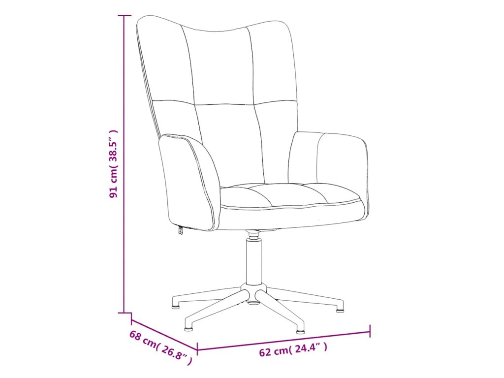 Toto kreslo s ozdobným prešívaním so štvorcovým vzorom pôsobí veľmi elegantne. Poťah z na dotyk mäkkého zamatu s hrubým molitanovým polstrovaním vám poskytne optimálne pohodlie pri sedení. Relxačné kreslo sa dá otáčať v rozsahu 360 stupňov, takže je naozaj flexibilné. Relaxačné kreslo je navyše podopreté oceľovým rámom s krížovými nohami, ktoré mu dodávajú potrebnú stabilitu a trvácnosť.