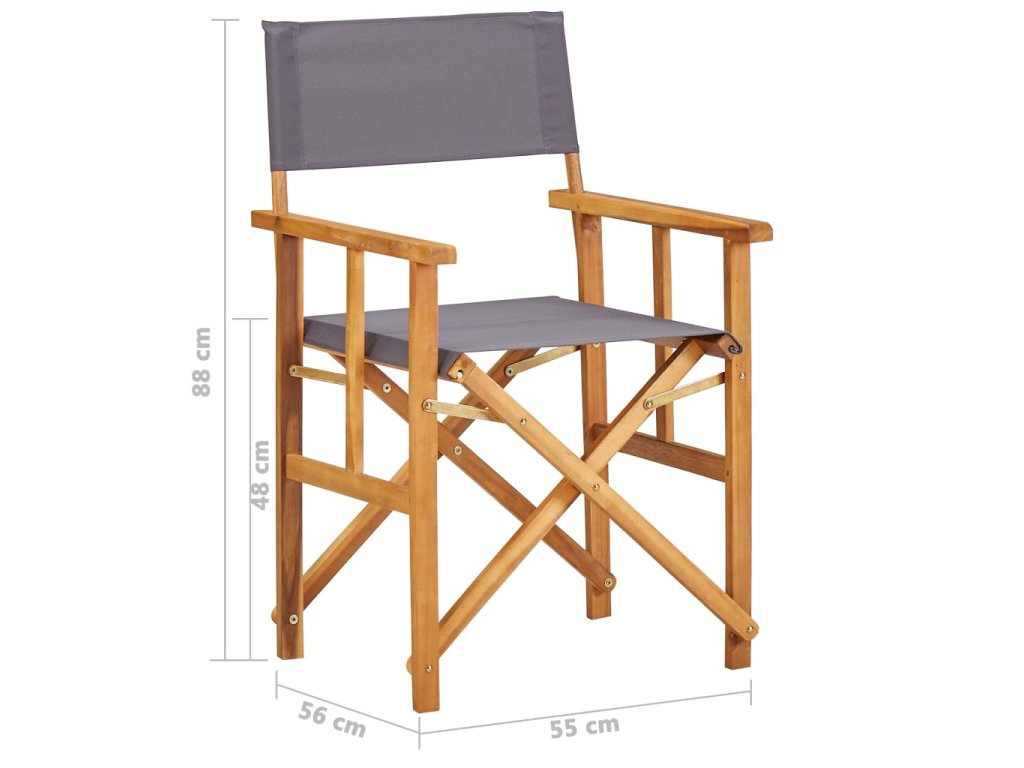 Režisérska stolička je vyrobená z akáciového masívu. Ide o tvrdé tropické drevo, ktoré je skutočne trvácne a odolné voči poveternostným vplyvom. Sedadlo a operadlo z vysokokvalitnej látky sa postarajú o pohodlie pri sedení. Vonkajšia stolička sa dá v priebehu pár sekúnd poskladať a bez problémov odložiť či preniesť, keď sa nepoužíva.