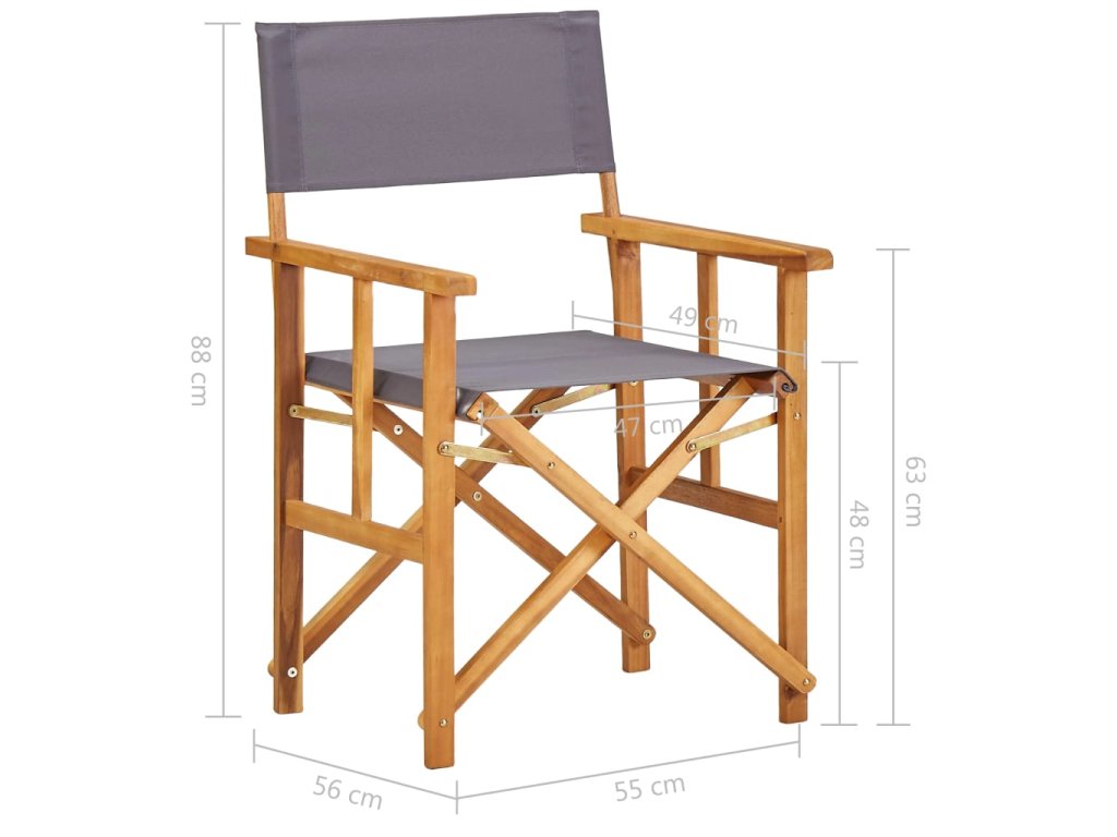 Režisérske stoličky sú vyrobené z akáciového masívu. Ide o tvrdé tropické drevo, ktoré je skutočne trvácne a odolné voči poveternostným vplyvom. Sedadlá a operadlá z vysokokvalitnej látky sa postarajú o pohodlie pri sedení. Vonkajšie stoličky sa dajú v priebehu pár sekúnd poskladať a bez problémov odložiť či preniesť, keď sa nepoužívajú.