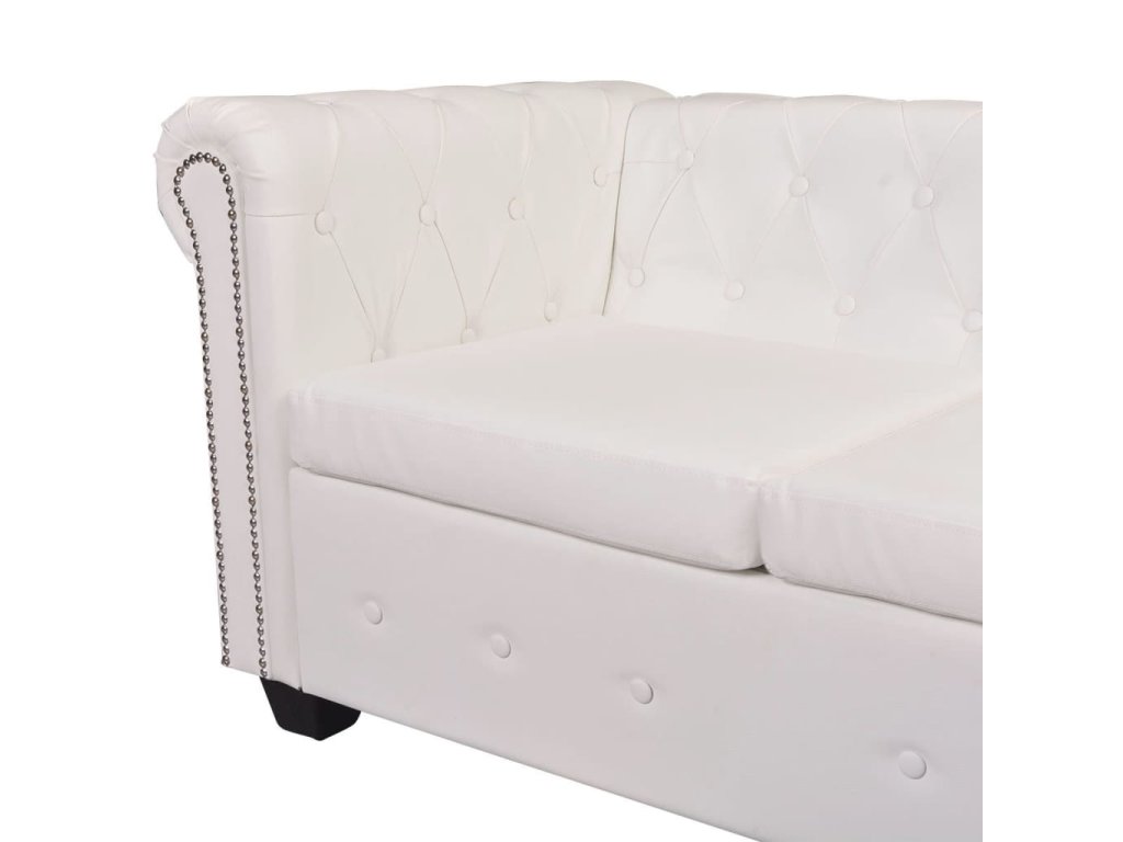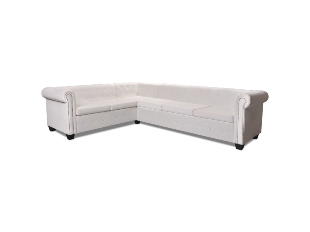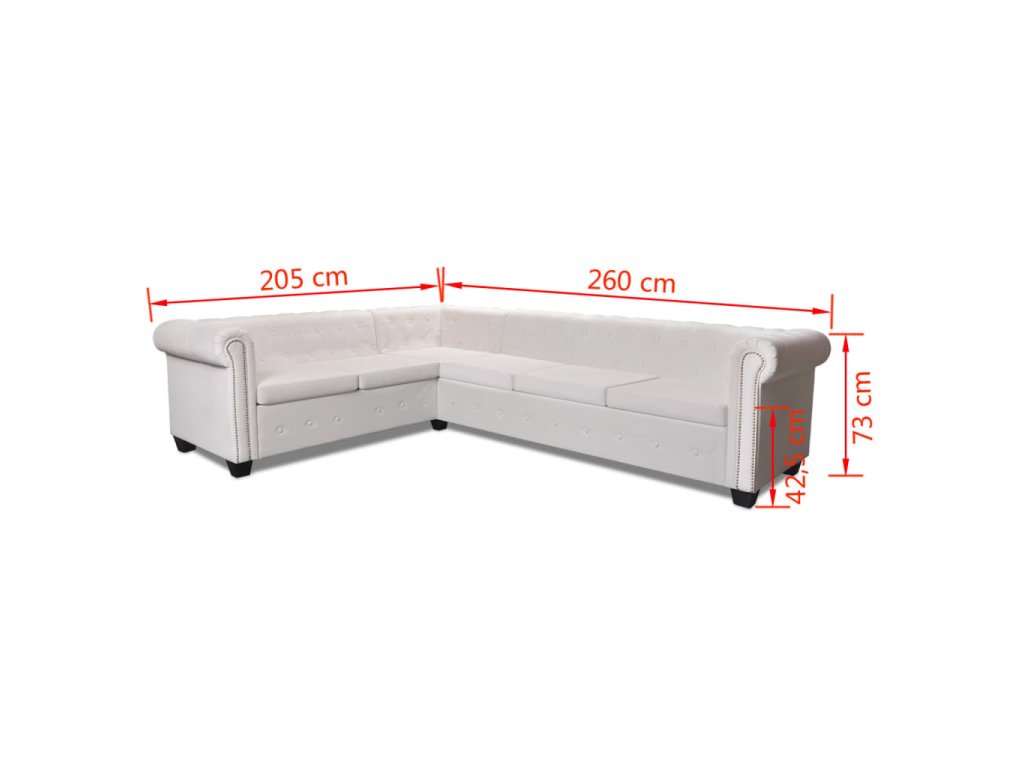 Táto rohová pohovka Chesterfield stelesňuje perfektnú kombináciu pohodlia a sofistikovanosti a stane sa tak skvelým doplnkom do domácnosti alebo do kancelárie. 6-miestna pohovka s ozdobnými gombíkmi na operadlách a dekoratívnym lemom na elegantne zahnutých opierkach na ruky dodá vášmu interiéru nádych luxusu, noblesy a štýlu.