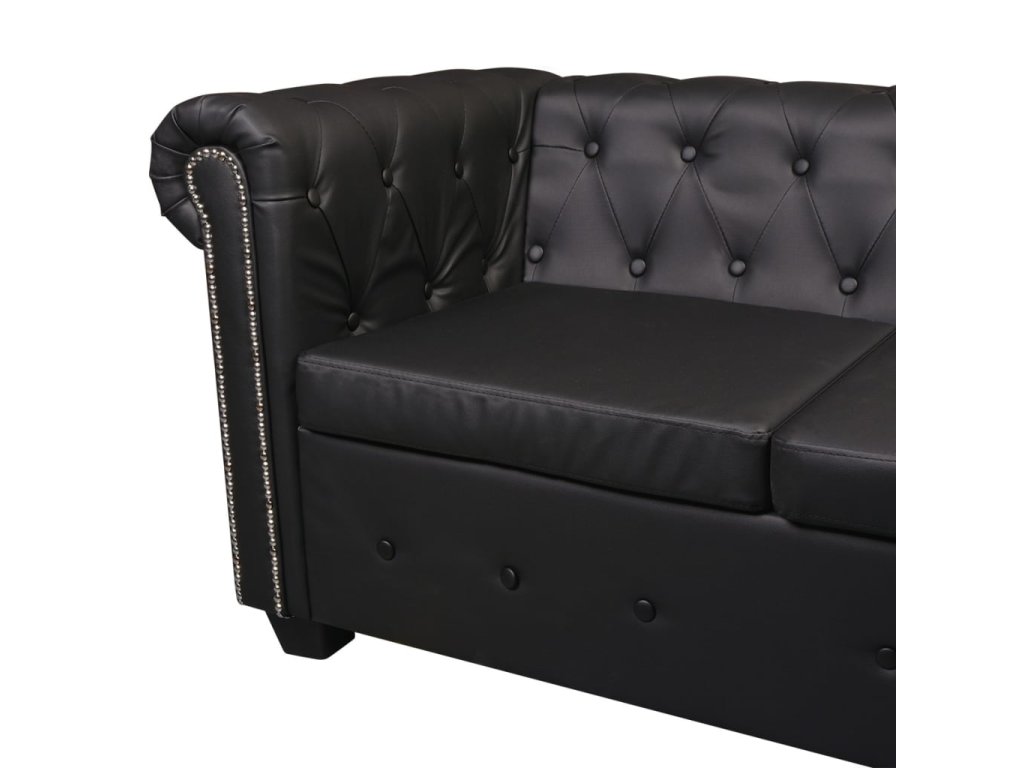 Táto rohová pohovka Chesterfield stelesňuje perfektnú kombináciu pohodlia a sofistikovanosti a stane sa tak skvelým doplnkom do domácnosti alebo do kancelárie. 6-miestna pohovka s ozdobnými gombíkmi na operadlách a dekoratívnym lemom na elegantne zahnutých opierkach na ruky dodá vášmu interiéru nádych luxusu, noblesy a štýlu.
