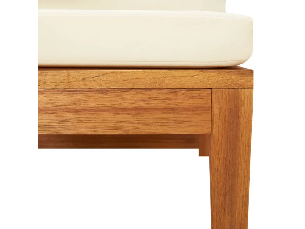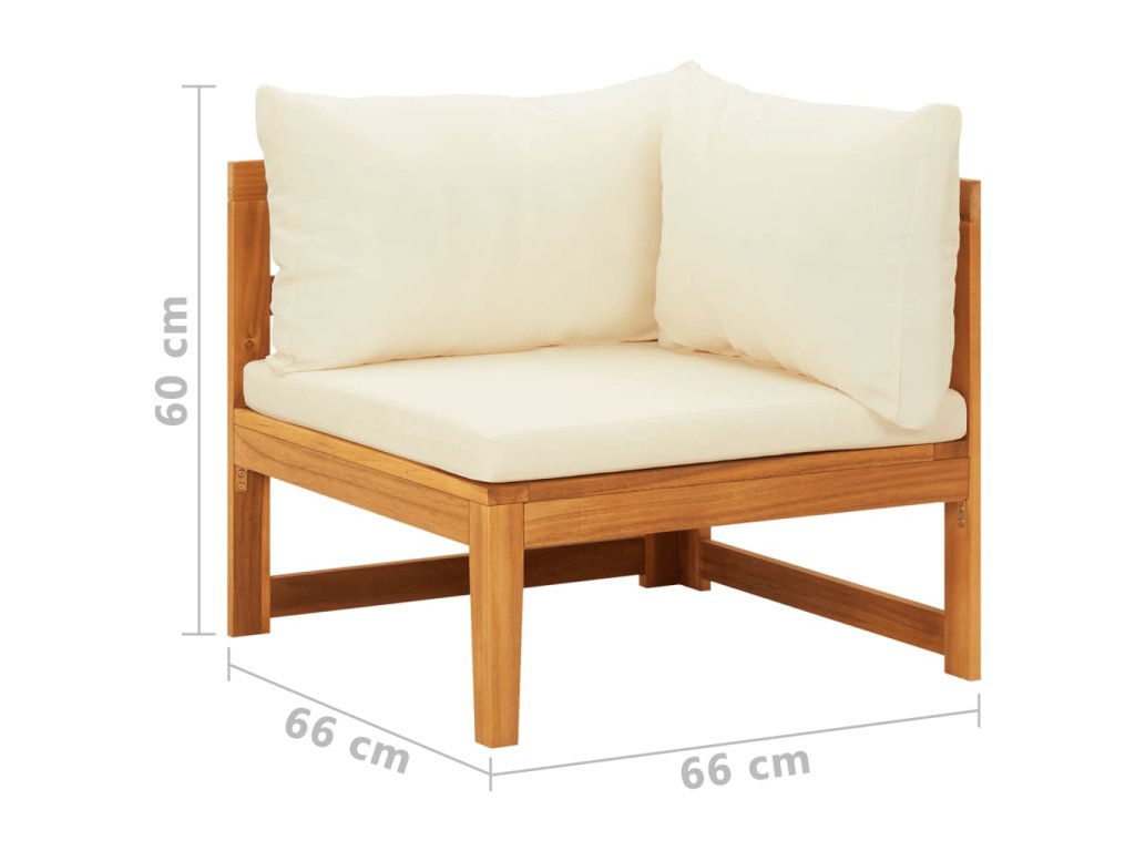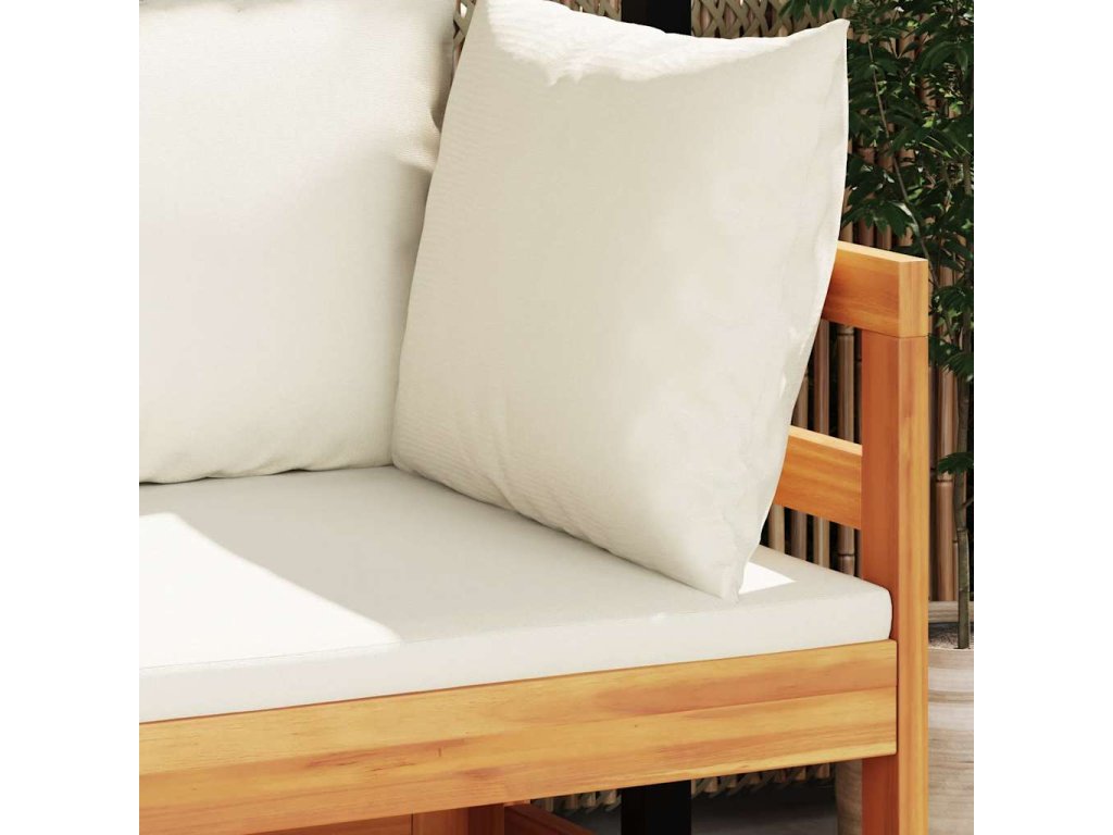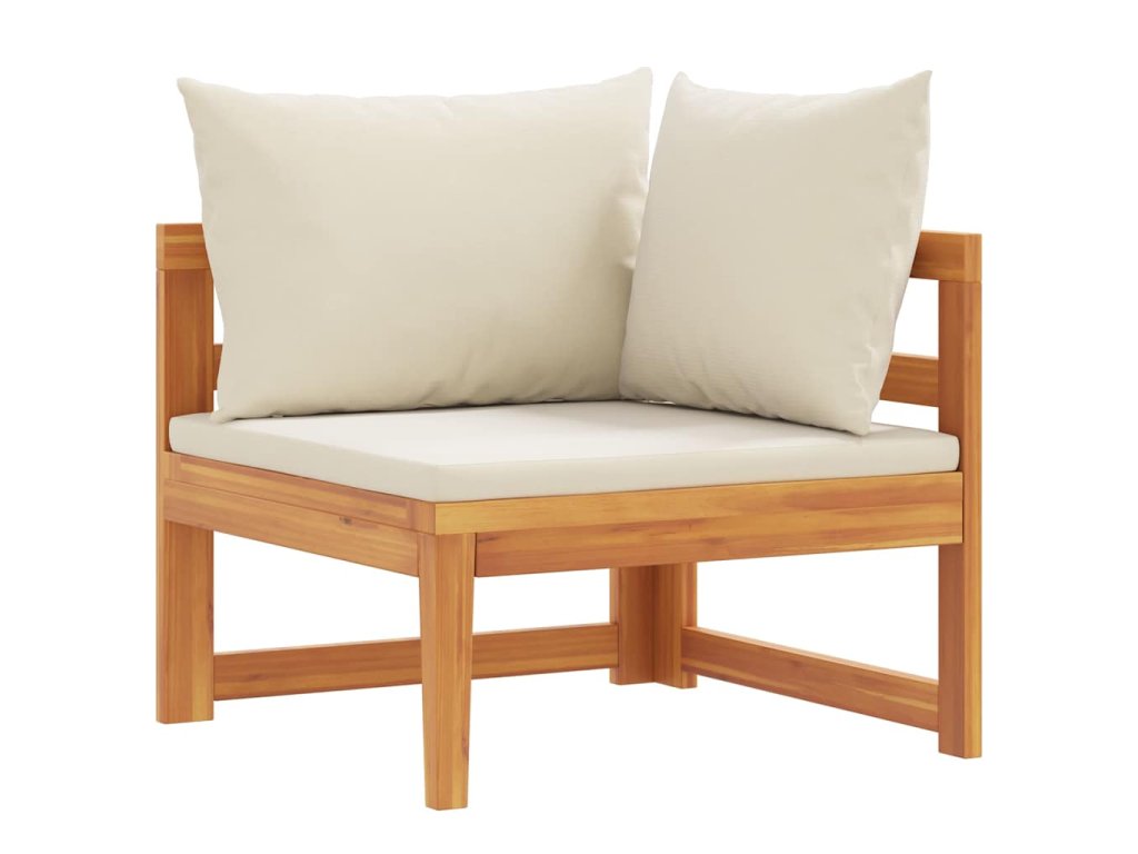 Táto záhradná rohová sedačka je vyrobená z masívneho akáciového dreva, tvrdého dreva s bohatou štruktúrou. Táto krásne navrhnutá vonkajšia rohová pohovka je stabilná, odolná a pútavá. Vďaka vynikajúcemu remeselnému spracovaniu a krásnej štruktúre dreva sa každý kus mierne líši od ostatných kusov. Pribalené vankúše poskytnú dokonalé pohodlie pri odpočinku.