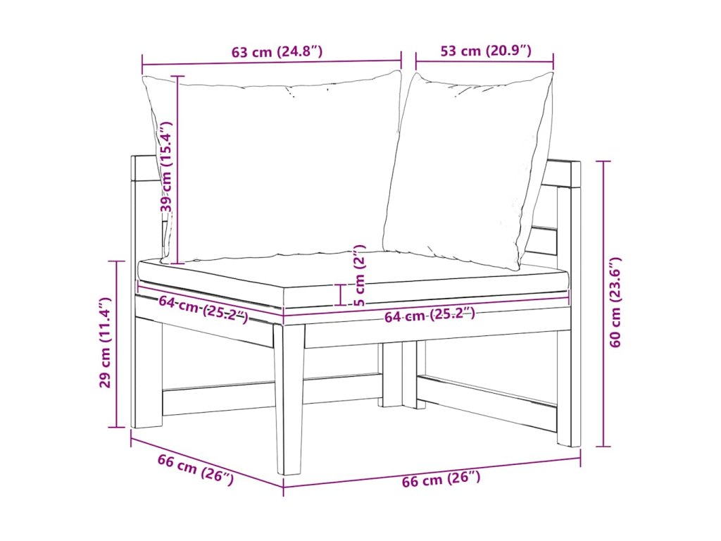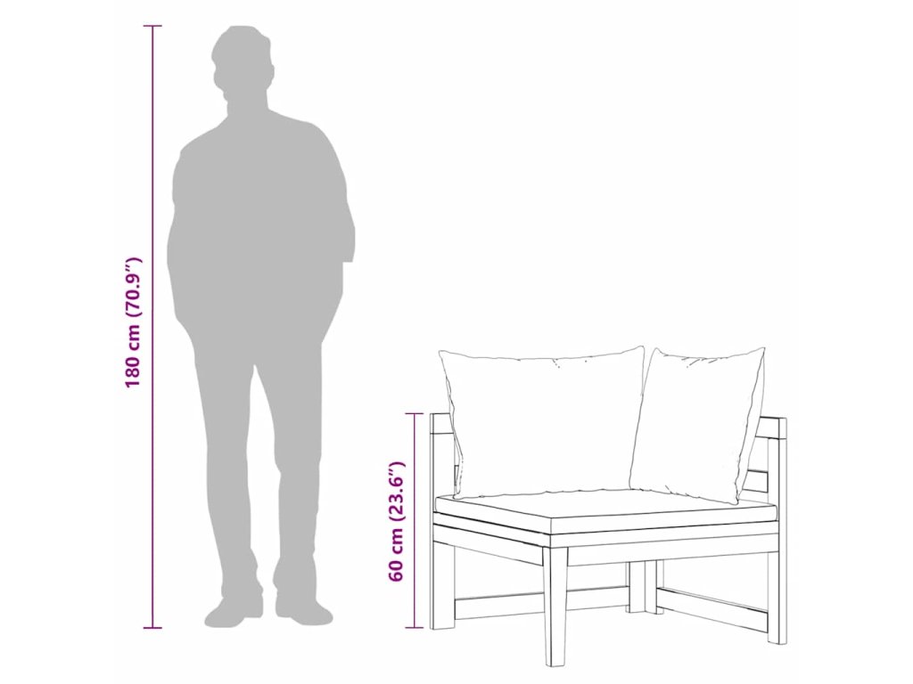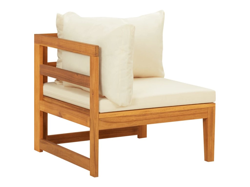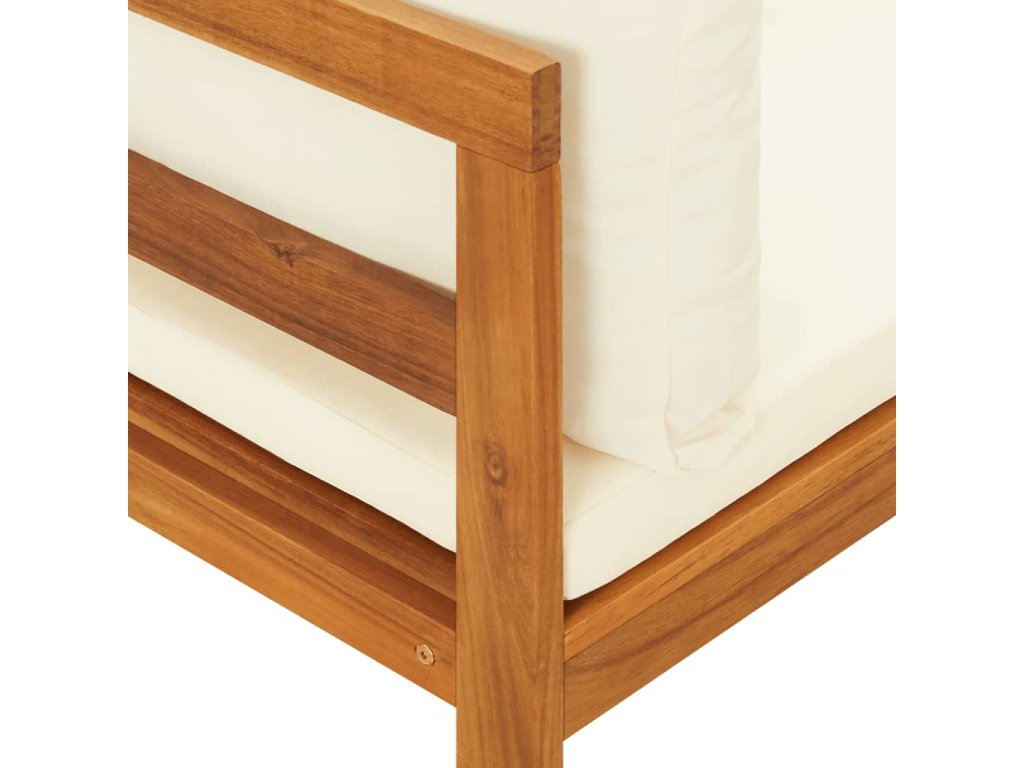 Táto záhradná rohová sedačka je vyrobená z masívneho akáciového dreva, tvrdého dreva s bohatou štruktúrou. Táto krásne navrhnutá vonkajšia rohová pohovka je stabilná, odolná a pútavá. Vďaka vynikajúcemu remeselnému spracovaniu a krásnej štruktúre dreva sa každý kus mierne líši od ostatných kusov. Pribalené vankúše poskytnú dokonalé pohodlie pri odpočinku.