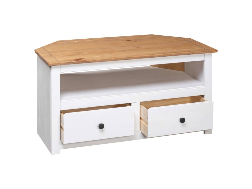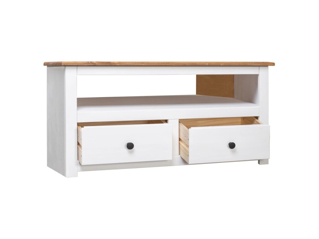 Táto skrinka je vyrobená z masívneho borovicového dreva a je odolná a pevná. Na pevný povrch z tvrdého dreva môžete umiestniť televízor, router, multimediálne zariadenia alebo vystaviť ozdobné predmety, ako sú fotorámčeky, ovocné koše alebo vázy. Televízna skrinka je vybavená 2 zásuvkami a 1 otvoreným priestorom a ponúka dostatok úložného priestoru pre rôzne drobnosti. Ľahko sa čistí pomocou suchej handričky. Montáž zásuvkovej skrinky je jednoduchá.