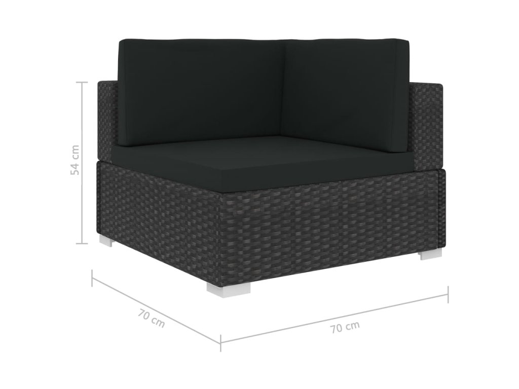 Rohová pohovka je vyrobená z vodovzdorného PE ratanu, ktorý je odolný voči poveternostným vplyvom, takže sa ľahko čistí, je odolná a vhodná na každodenné používanie. Sedadlo má pevný oceľový rám s práškovou povrchovou úpravou, ktorý je veľmi trvácny. Sedačka je okrem toho ľahká a modulárna, takže sa dá ľubovoľne presúvať, aby vyhovovala akýmkoľvek priestorom. Hrubé odnímateľné podložky vám poskytnú optimálne pohodlie. Môžete ju skombinovať s ďalšími stredovými sedačkami či podnožkami, ktoré nájdete v rozbaľovacom menu, a vytvoriť si tak záhradné sedenie podľa svojich predstáv!