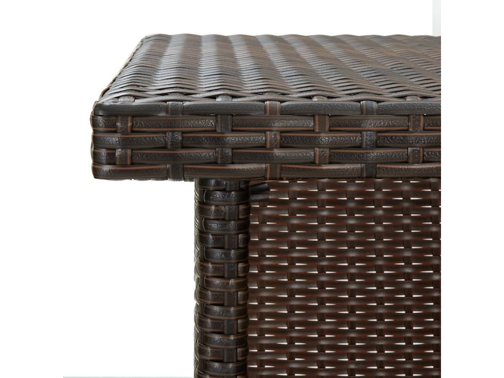 Tento rohový barový stôl je vyrobený z PE ratanu a oceľového rámu, vďaka čomu je odolný a stabilný. 3 úložné police pod stolovou doskou poskytujú ďalší úložný priestor, aby ste mali všetky potrebné predmety na dosah ruky. Vďaka ľahkej konštrukcii sa bistro stolík jednoducho montuje.