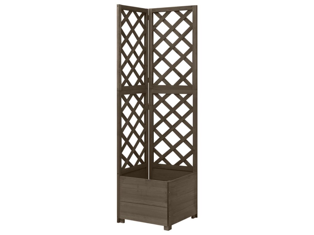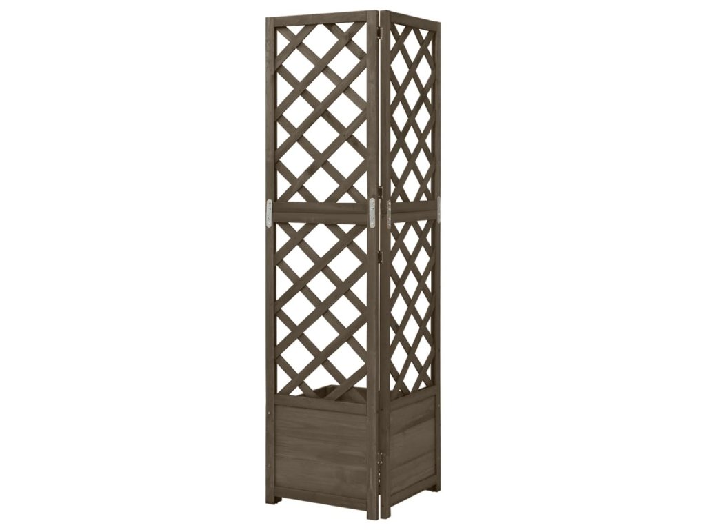 Tento drevený kvetináč je vyrobený z masívneho jedľového dreva, vďaka čomu je pevný a vhodný na vonkajšie použitie. Je vybavený kvetináčom, do ktorého môžete umiestniť nádherné kvety. Mriežka poskytne stabilnú oporu pre popínavé rastliny, a tak budú môcť ruže, brečtan a iné popínavé rastliny krásne rásť. Okrem toho sa táto záhradná mriežka zmestí do rohov a zaberie tak menej miesta.