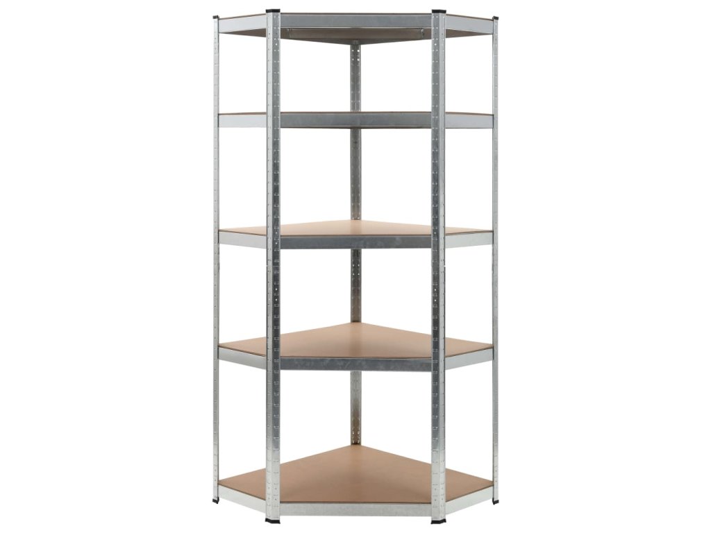 Tento rohový regál je vhodný do domácností aj komerčných priestorov a poskytuje množstvo miesta na prehľadné odkladanie rôznych predmetov.