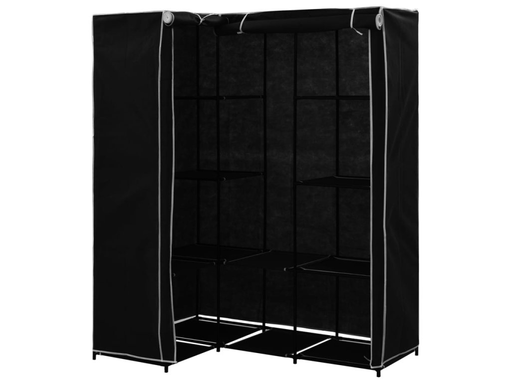 Šatník sa vyznačuje sa robustným železným rámom, vďaka ktorému je mimoriadne odolný. V porovnaní s bežnou textilnou skrinkou je štruktúra rohovej textilnej skrinky stabilnejšia. Priestorovo úsporná skriňa optimalizuje využitie rohu, čím ponúka veľký úložný priestor. Veci sa do nej dajú zavesiť, aby vaše tašky, topánky a malé predmety boli usporiadané a na dosah ruky. Textilný poťah so zipsmi ochráni vaše oblečenie pred špinou a prachom.