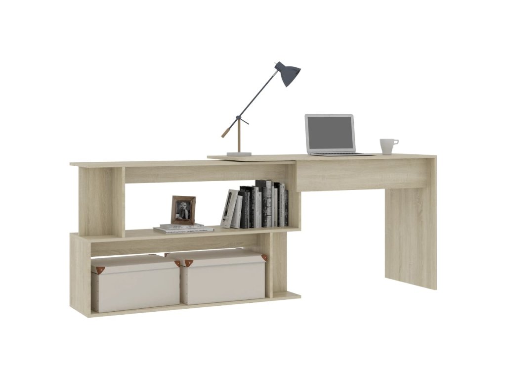 Tento písací stôl má originálny otočný dizajn, takže z neho môžete spraviť rohový stôl, aby sa dal umiestniť do rôzne rozvrhnutých priestorov. Pracovný stôl je vyrobený z kvalitného kompozitného dreva, vďaka čomu je robustný, trvácny a má dlhú životnosť. Tento písací stôl s veľkými otvorenými priečinkami poskytuje dostatok úložného priestoru, a tak je ako stvorený do menších kancelárií, internátnych izieb či do menších domácností! Môžete ho využívať aj ako konzolový stolík do chodby.