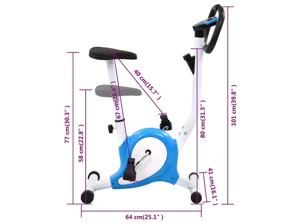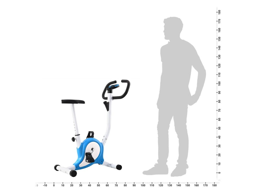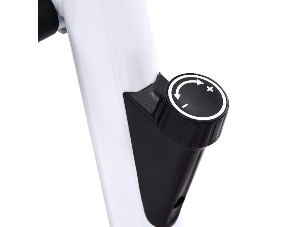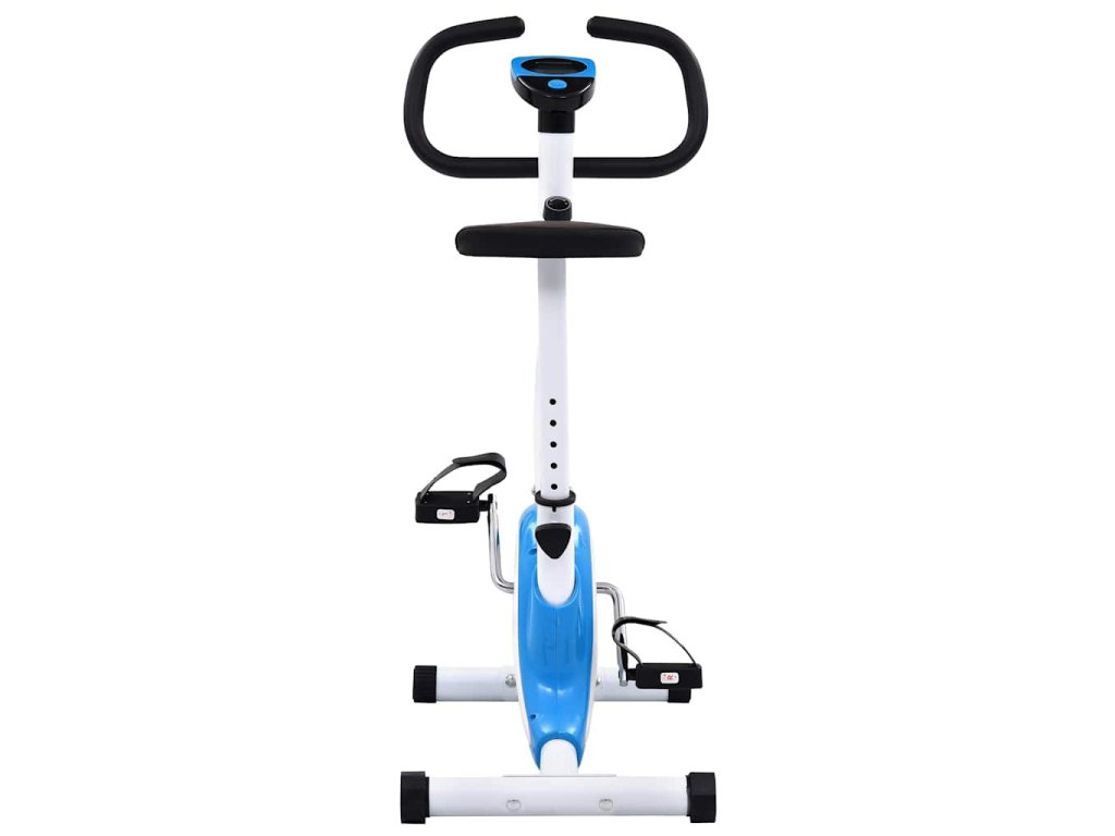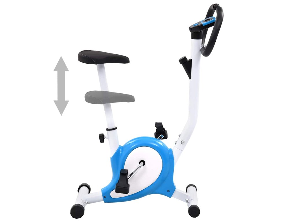 - Ergonomický dizajn: Stacionárny bicykel má ergonomický dizajn. Sedlo sa dá vertikálne nastaviť podľa vašej výšky. Protišmykové pedále umožňujú optimálny prenos sily z chodidla na pedál. Remene zabránia tomu, aby vám nohy skĺzali z pedálov.