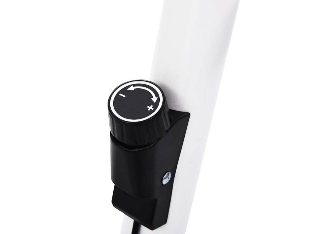 - Praktický dizajn: Remene zabránia tomu, aby vám nohy skĺzali z pedálov. Tlačilo + / - na nastavenie odporu stacionárneho bicykla vám umožní utiahnuť pás pre intenzívnejší tréning.