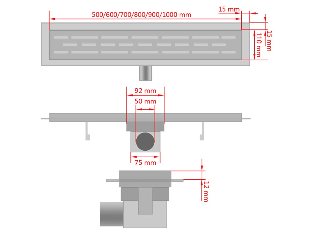 - Veľkosť odtokového roštu: 1000 x 110 mm (D x Š)