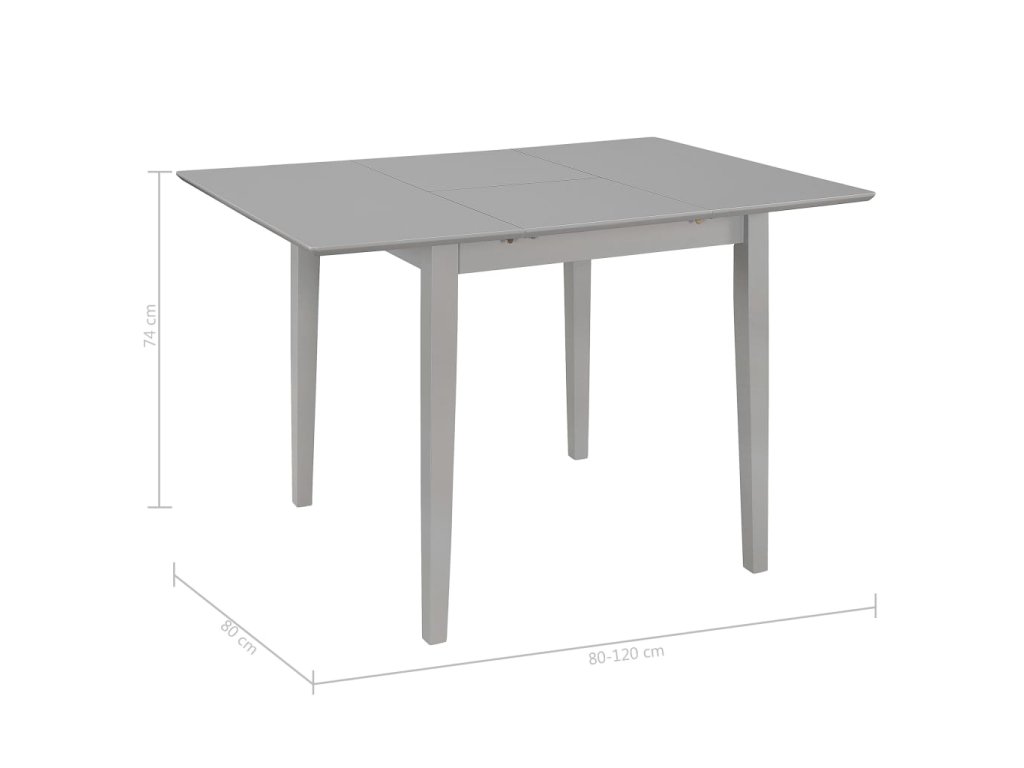 Jedálenský stôl je vyrobený z masívneho kaučukového dreva a má dosku z drevotriesky, ktorá mu dodáva rustikálny nádych. Vďaka svojmu charakteristickému dizajnu sa dá jedálenský stôl rozložiť najviac na 120 cm, ak potrebujete viac miesta. Stôl môžete rozložiť, aby ste pohostili viac hostí, a sklopiť ho, keď potrebujete ušetriť miesto.