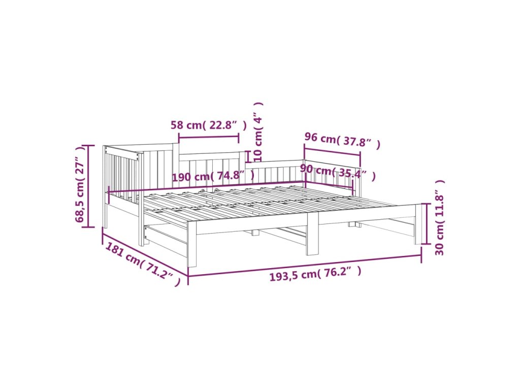 - Rozmery postele (nevysunutá): 193,5 x 96 x 68,5 cm (D x Š x V)