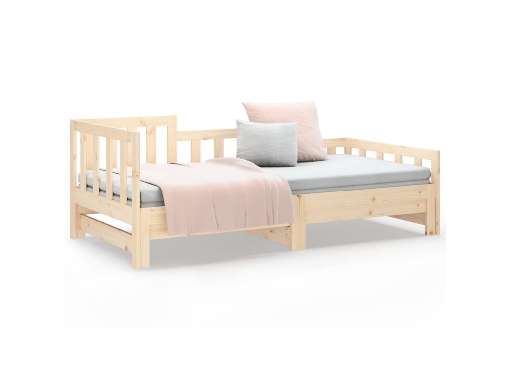 - Rozkladacia pohovka: Táto drevená denná posteľ sa dá použiť ako pohovka cez deň alebo ako posteľ v noci, čím poskytuje rýchle riešenie na prenocovanie hostí a zároveň šetrí miesto.
