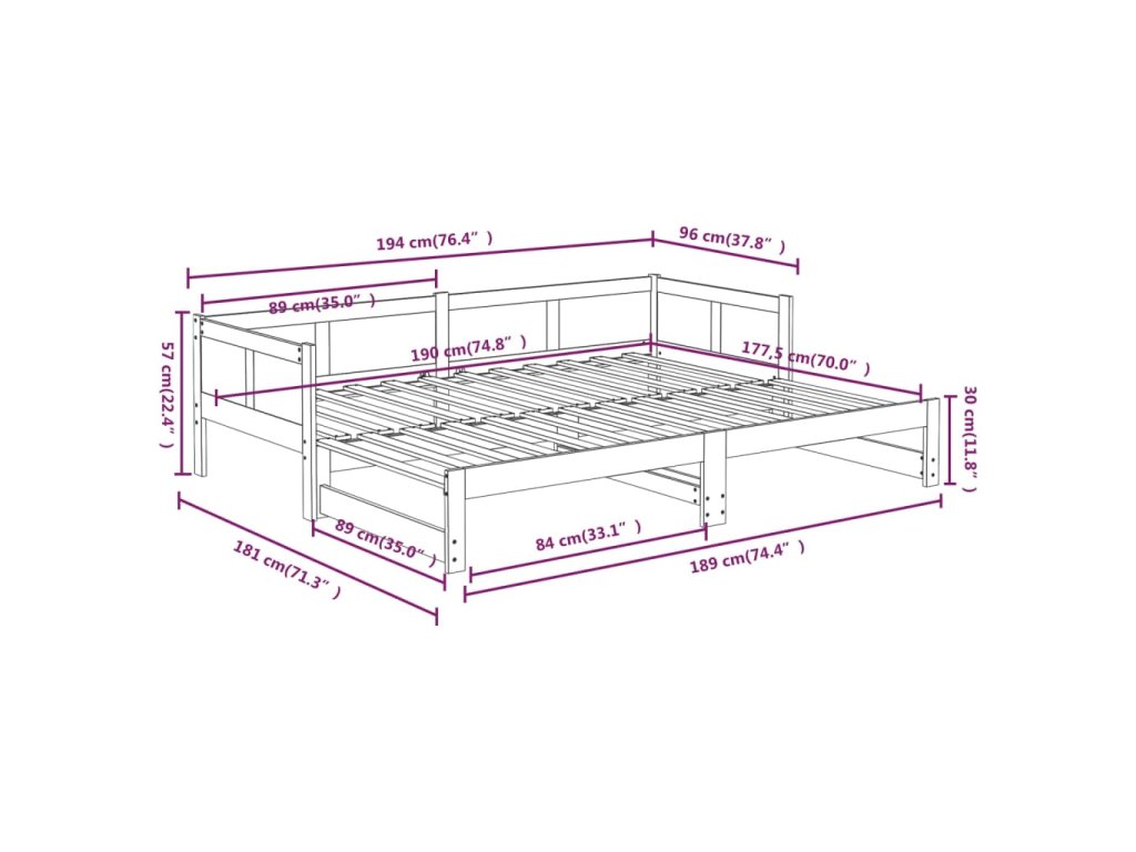 - Rozmery postele (nevysunutá): 194 x 96 x 57 cm (D x Š x V)