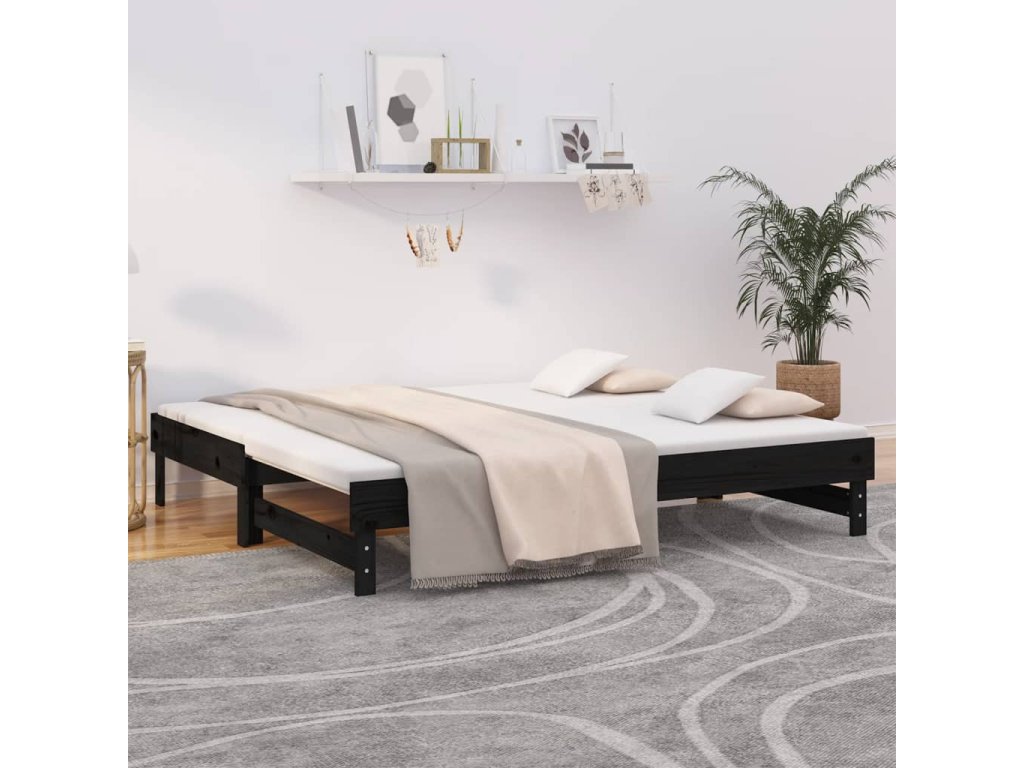 - Rozkladacia pohovka: Táto drevená denná posteľ sa dá použiť ako pohovka cez deň alebo ako posteľ v noci, čím poskytuje rýchle riešenie na prenocovanie hostí a zároveň šetrí miesto.