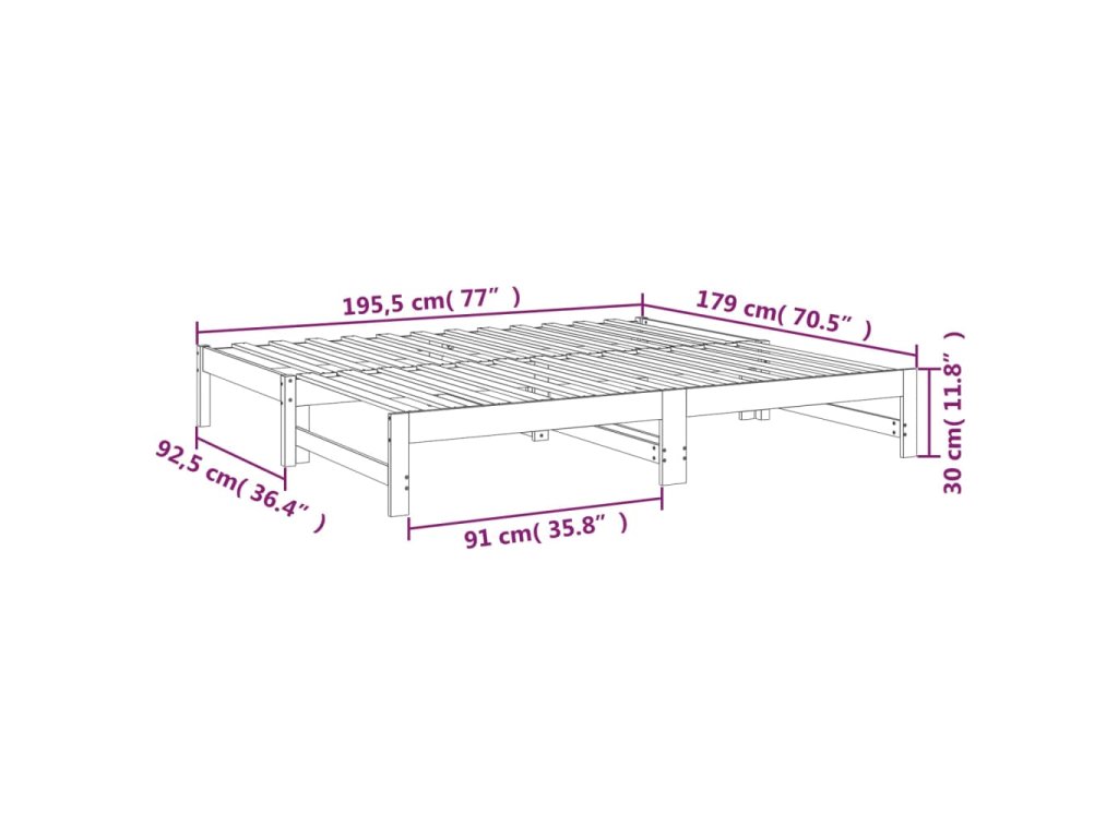 - Rozmery postele (nevysunutá): 195,5 x 92,5 x 30 cm (D x Š x V)